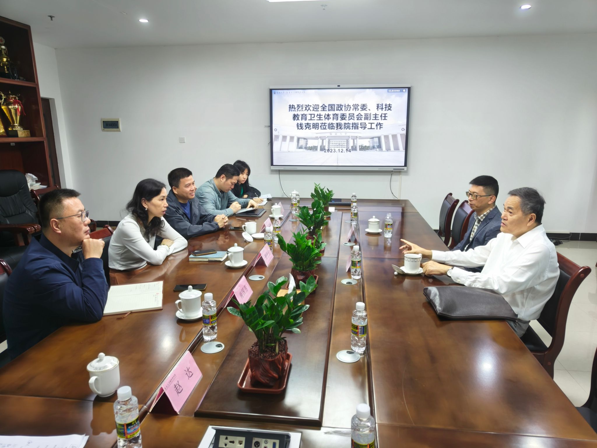 2023年12月5日,第十四届全国政协常委、教科卫体委员会副主任,民盟中央常委钱克明同志等一行莅临beat365官网指导工作,并与beat365官网领导班子举行座谈会。主持学院党委工作南国芳书记,副院长许能锐、童泽林、孙鹏参加活动。