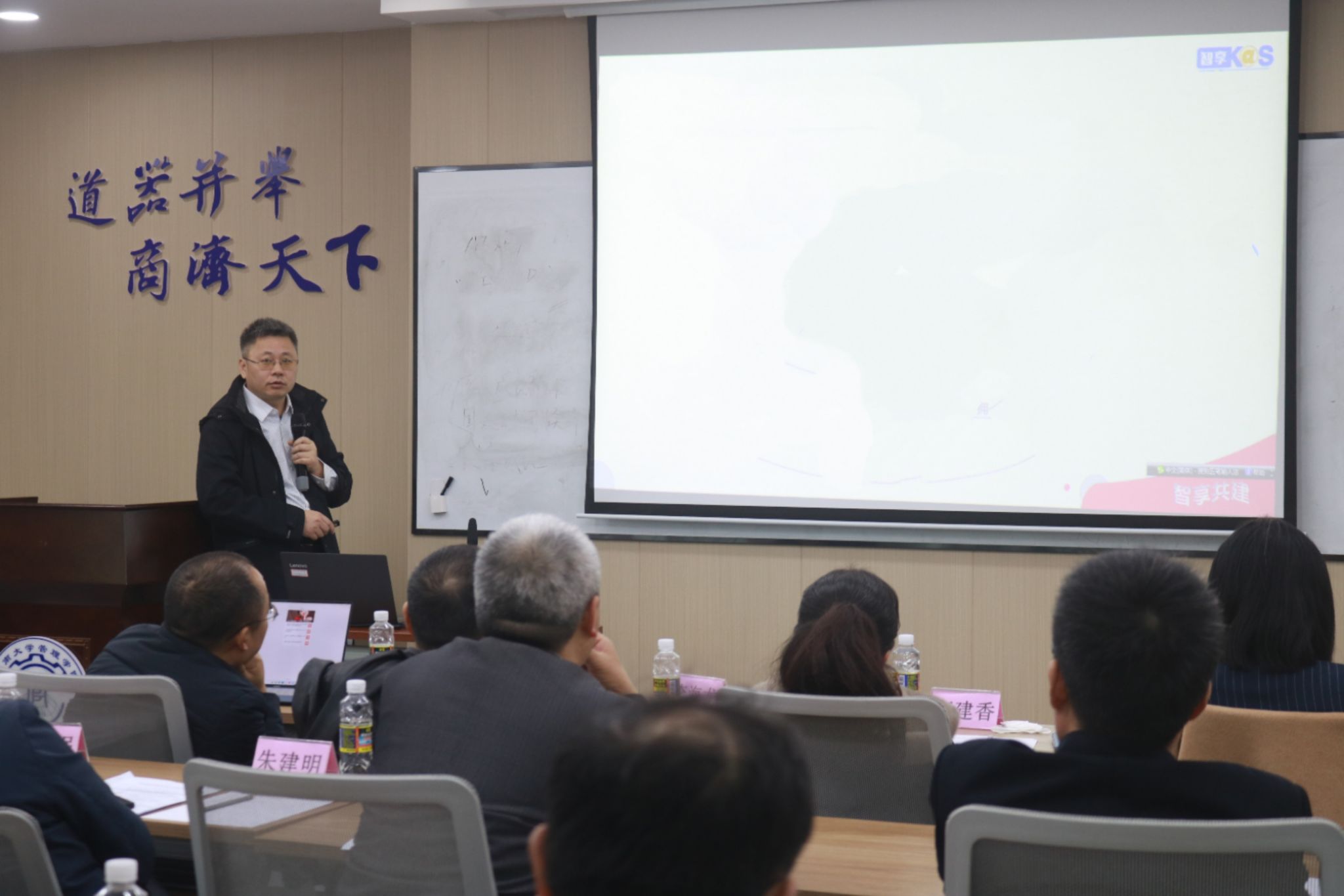 北京百智享科技有限公司技术总监刘飞欧为本次研讨会作主题为“基于知识图谱的财经虚拟教研室建设思路与服务方案”的演讲。他提到,知识图谱的应用有助于提升教学和研究水平。他从知识图谱的构建、财经虚拟教研室教学平台的设计及智能化教学辅助工具的开发等方面进行的财经虚拟教研室的建设。