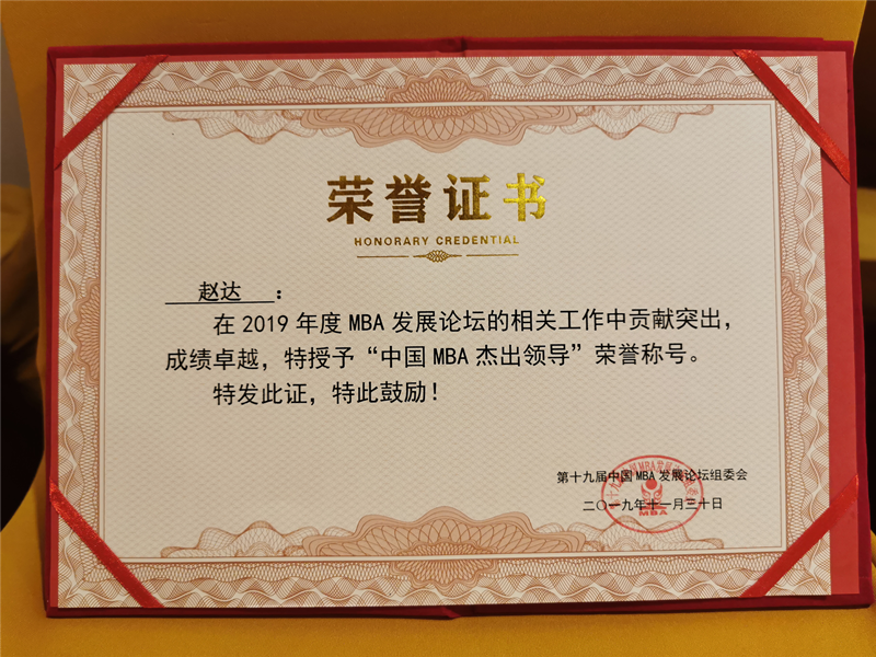 beat365唯一官方网站管理学院赵达副院长荣获2019年“中国MBA杰出领导”