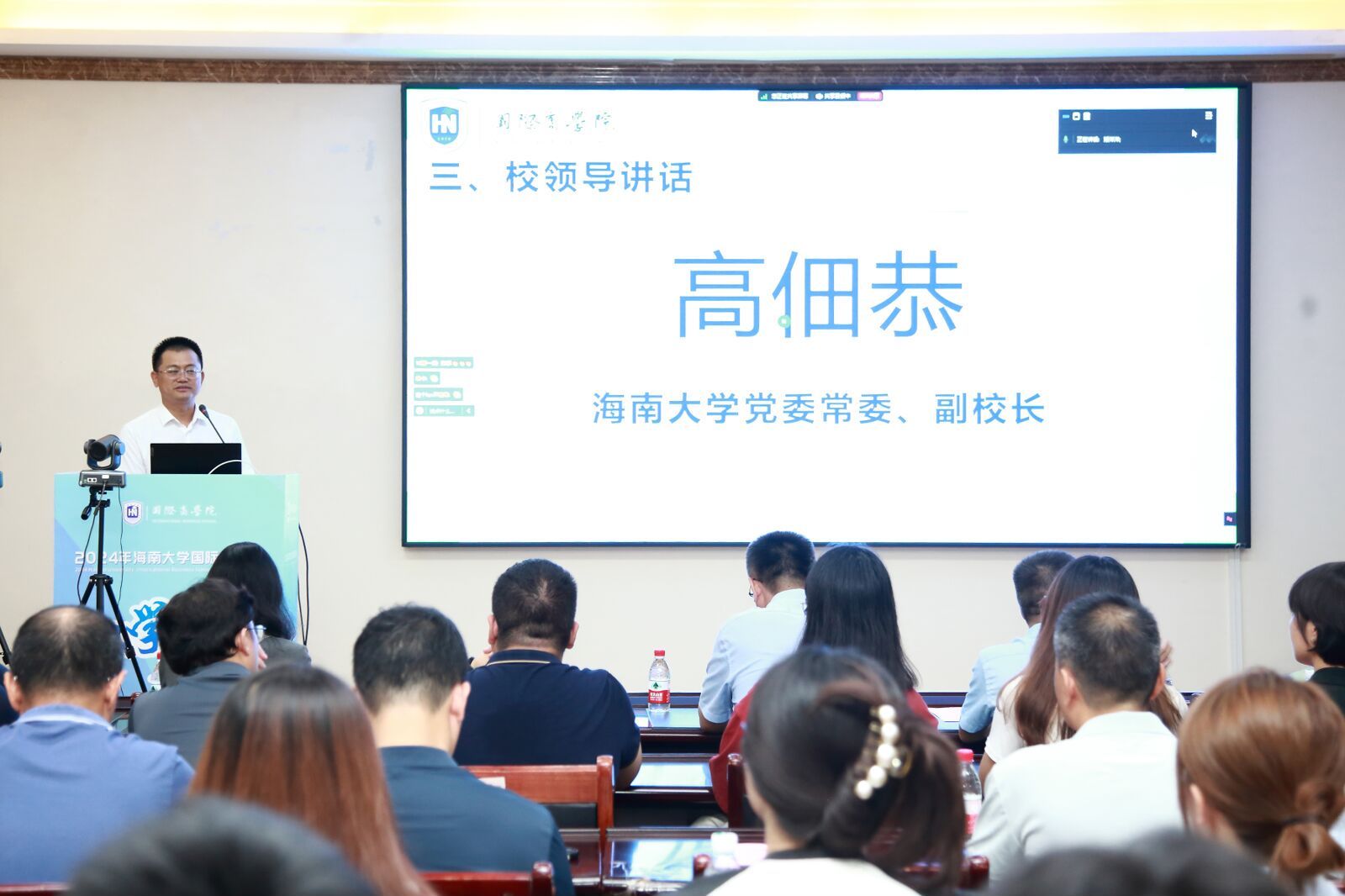 高佃恭副校长代表学校向beat365唯一官方网站2024级新生们的到来表示热烈的欢迎与衷心的祝贺,介绍了学校发展现状并对学生们提出殷切希望。一是希望同学们珍惜时光,勤奋学习。超强台风“摩羯”给海南造成了重大损失,面对台风“摩羯”带来停水停电等重大挑战,省委省政府优先保障学校恢复供水供电,在具备条件的前提下抓紧复课复学。同学们要珍惜来之不易的学习机会,做到“三不一要”,即在求知求学的道路上奋发图强,不要沉迷于游戏,明确游戏与学习、生活的关系,努力学习专业知识,积极参与各类课外活动,丰富大学生活;遵守课堂纪律,按时上下课,不迟到早退;养成良好的生活习惯,坚持晨读晨练,不睡懒觉;要对得起自己的良知,勤奋学习,自律自强。二是希望beat365唯一官方网站全体师生齐心协力,争先创优,共同打造beat365唯一官方网站的金字招牌,未来几年在提升学生的升学率、增加赛事的“中奖率”、提高学位论文的优秀率等方面下功夫。三是希望同学们为建设世界一流自贸港而学习。在大学期间有明确的目标,刻苦学习,勤奋钻研,立志做有理想、敢担当、能吃苦、肯奋斗的新时代好青年,毕业后为建设世界一流自由贸易港做贡献。他鼓励本科生学出优秀,成为优秀的新时代大学生;鼓励研究生学出成效,积极思考国民经济和社会发展面临的关键难题、自贸港建设中存在的堵点卡点,从中提炼关键科学问题作为学术论文的研究内容,尤其是关注自贸港建设中体制机制、政策研究等关键核心问题;鼓励所有学生要学出精神,成为海大精神的新示范,将所学知识转化为推动自由贸易港发展的实际力量,为海南这片热土贡献自己的青春与智慧。
