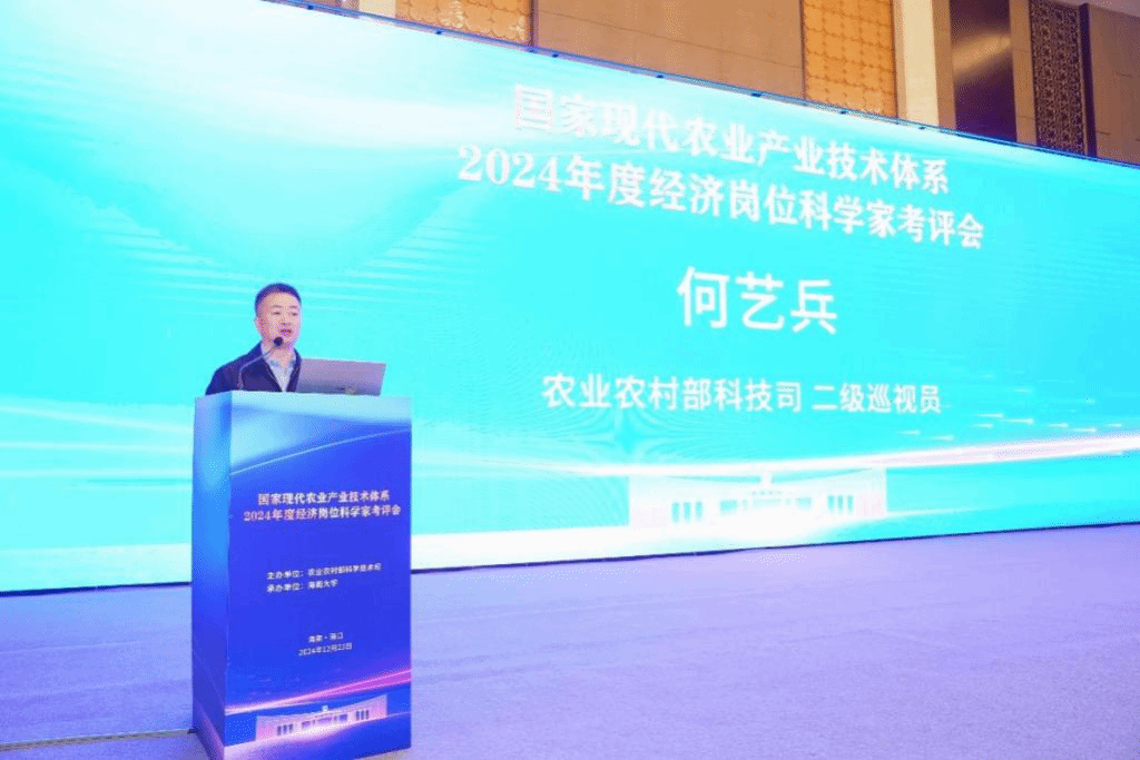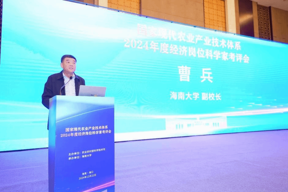 2024年12月22日,国家现代农业产业技术体系2024年度经济岗位科学家考评会在海口召开。本次会议由农业农村部科技司主办,beat365唯一官方网站承办。农业农村部科技司二级巡视员何艺兵、beat365唯一官方网站副校长曹兵以及相关评审专家、50位产业经济岗位科学家(以下简称“经岗专家”)及其团队成员参加会议。