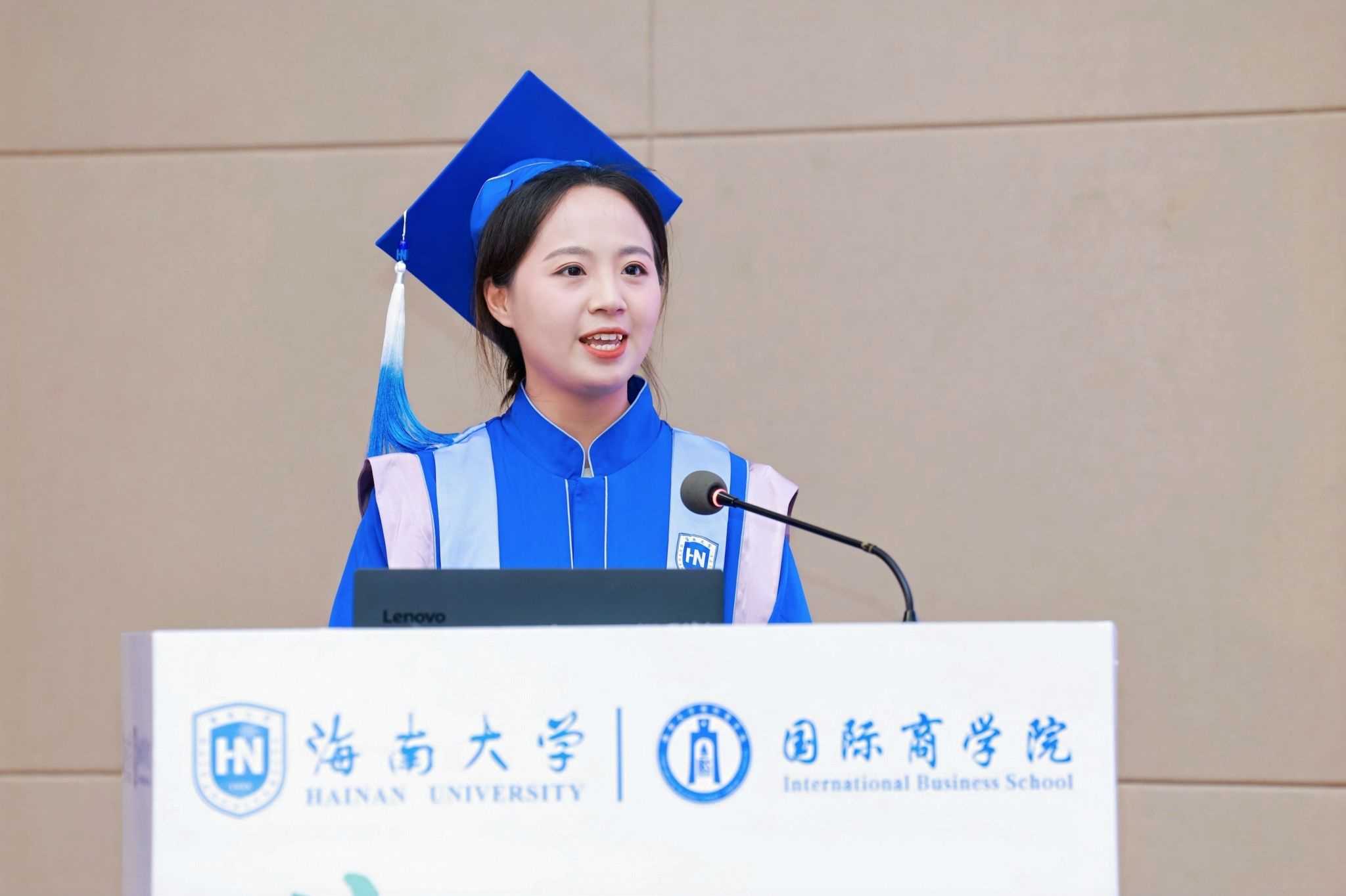 “东坡湖畔的万鹭齐歌,是为你们奏响的壮行曲。”教师代表林銮珠教授以五句箴言为毕业生系紧行囊:铭记 “丹心耀南疆” 的爱国奉献、“敢闯敢试” 的改革创新 —— 这是流淌在血脉中的海大精神;勇于追逐梦想,在青春赛道上奋力奔跑;永葆求知热忱,让专业之树在持续学习中常青;带着感恩之心启程,分享与合作会让道路越走越宽;牢记 “道器并举,商济天下”,让专业知识成为改变社会的力量。她的话语如春风化雨:“无论走多远,beat365唯一官方网站永远是你们的家。”