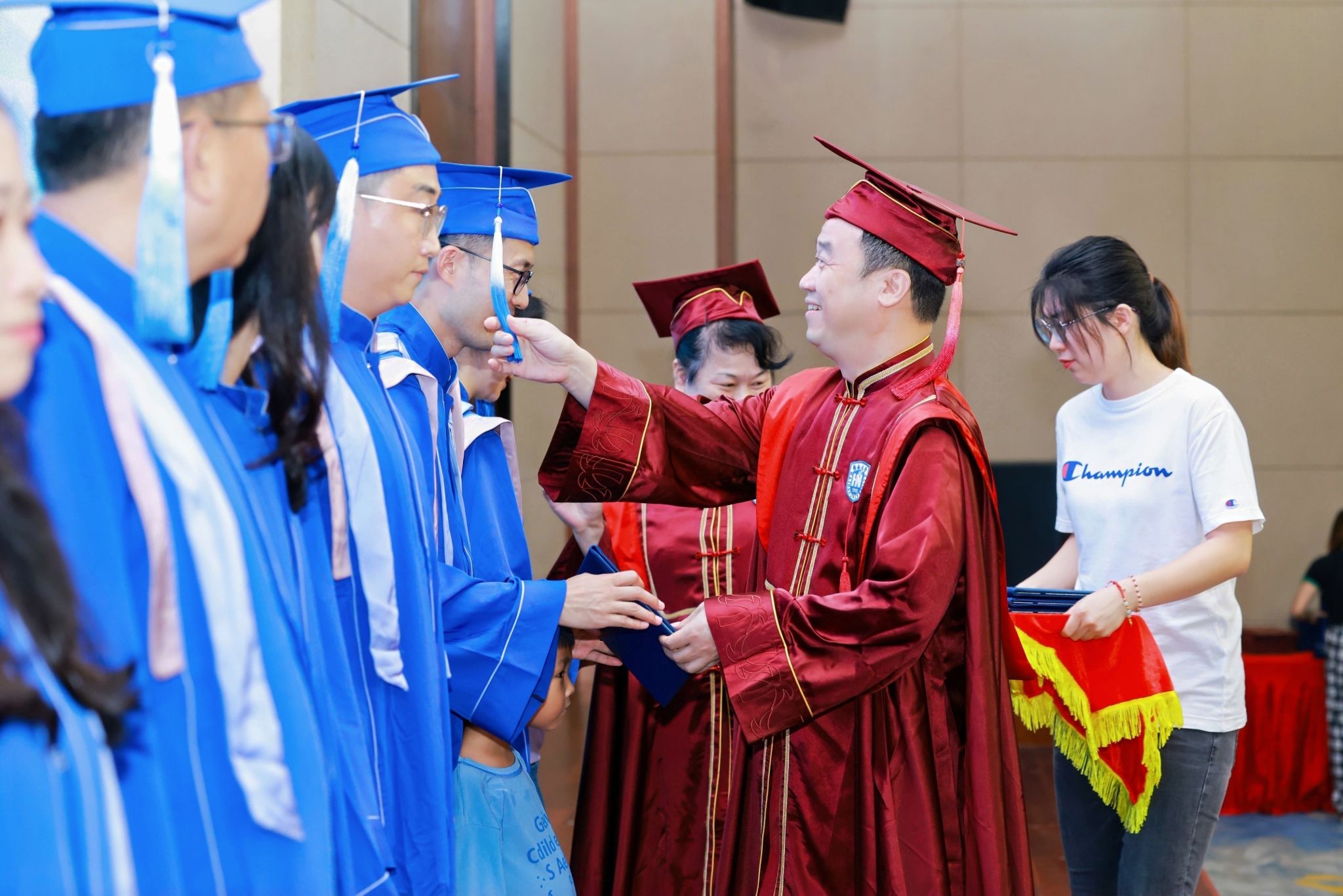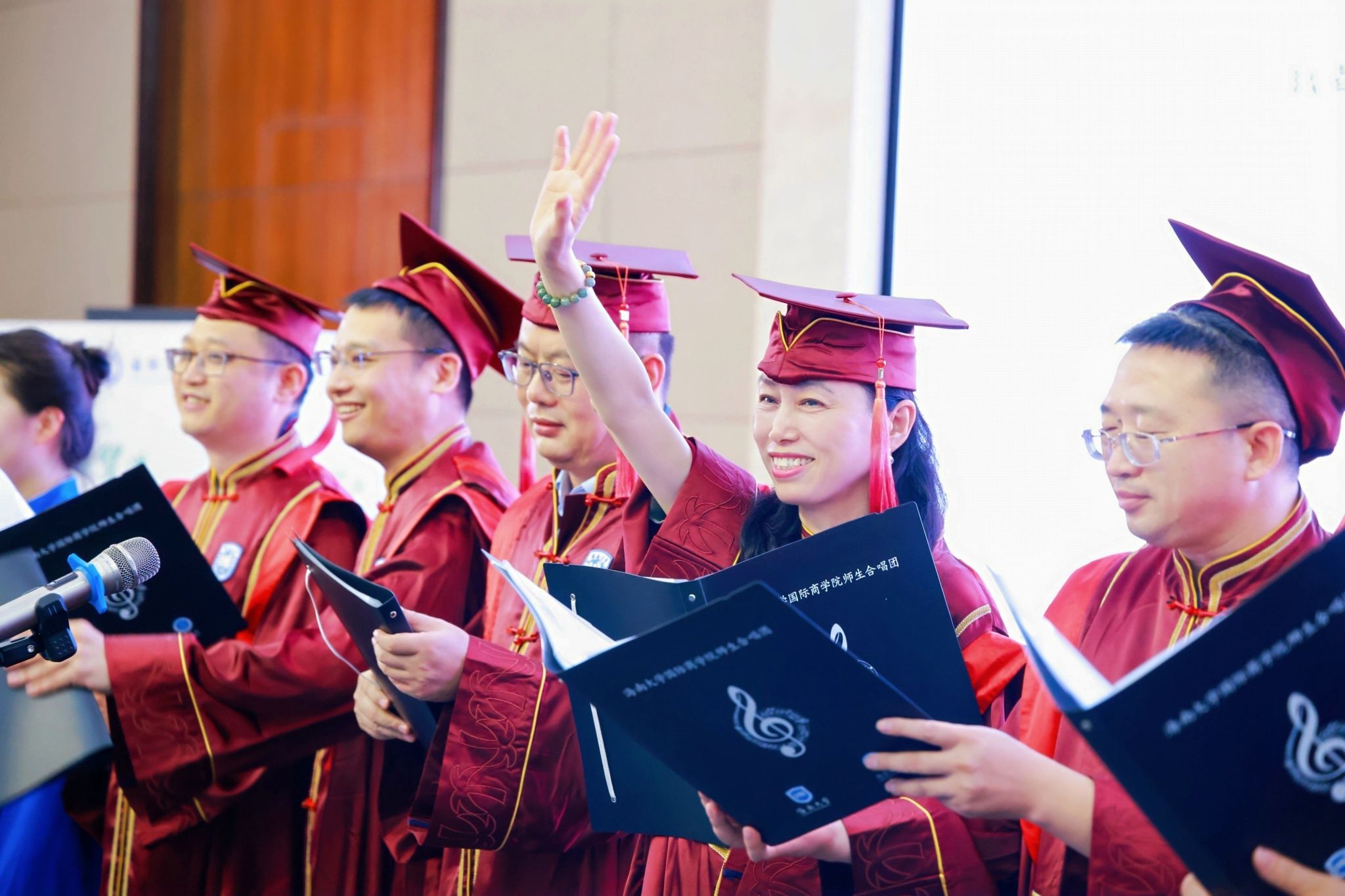 2022 级工商管理专业硕士毕业生贾志强则分享了兼顾学业与家庭的奋斗故事:“入学时爱人正身怀六甲,33 岁的她因我熬夜写论文熬出第一根白发。” 他哽咽着感恩导师在申博路上的全力推荐,更难忘 “带着孩子上课、异地求学” 的同窗群像:“满头白发见证了我们用‘商道正义’破解人生难题的坚持,如今终于能带着‘经世济民’的初心奔赴职场。