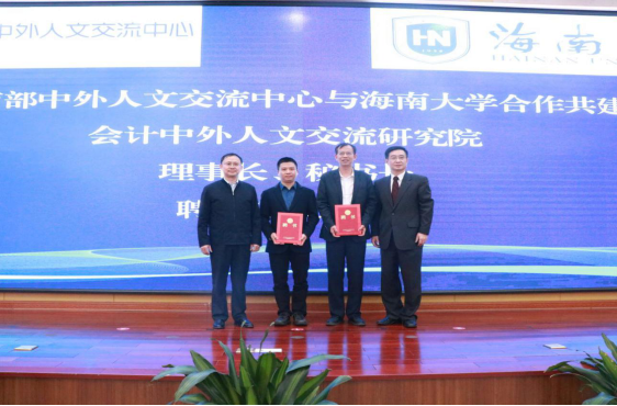 杜柯伟主任、骆清铭校长为“会计中外人文交流研究院”理事长、秘书长颁发聘书
