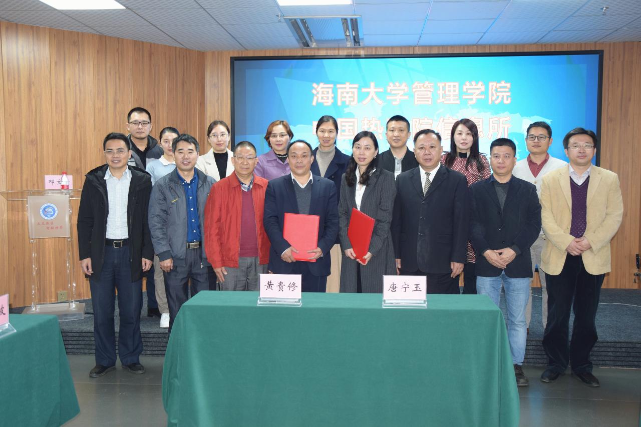2020年12月30日,beat365唯一官方网站管理学院与中国热带农业科学院科技信息研究所成功签署合作框架协议。beat365唯一官方网站管理学院出席领导包括院长唐宁玉、党委书记邢谷川、副院长许能锐、副院长付景涛、综合办公室主任刘扬雄,中国热带农业科学院科技信息研究所出席领导包括所长黄贵修、副所长阚应波、副所长胡盛红、副所长尹峰、办公室主任孙爱花、科技办公室主任王强、热带农业经济研究室主任田童、海南自由贸易港政策研究室主任陈诗高、国际热带农业研究室副主任曾小红、办公室政务管理副主任李娜。