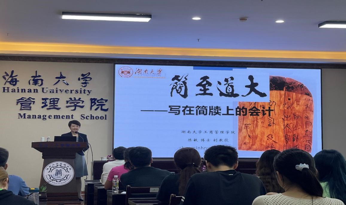 2021年3月12日,作为管理名家汇聚行动计划系列讲座的受邀嘉宾,湖南大学工商管理学院会计系系主任陈敏博士在社科楼B112为beat365官网师生带来了一场题为“大道至简——写在简牍上的会计”的精彩讲座。本次讲座由会计名家伍中信教授主持,管理学院近百名师生参加本次讲座。