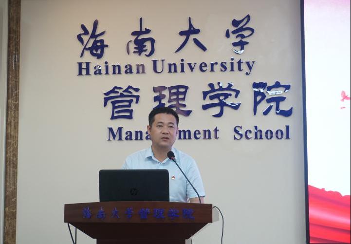 学院党建组织员李子昂根据《beat365唯一官方网站管理学院党史学习教育实施方案》,对2021年学院党史学习教育的目标要求、学习内容、工作安排等内容作了详细介绍。