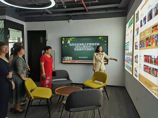 图2:胡亚玲所长带领MPAcc项目校内导师与学生代表参观介绍