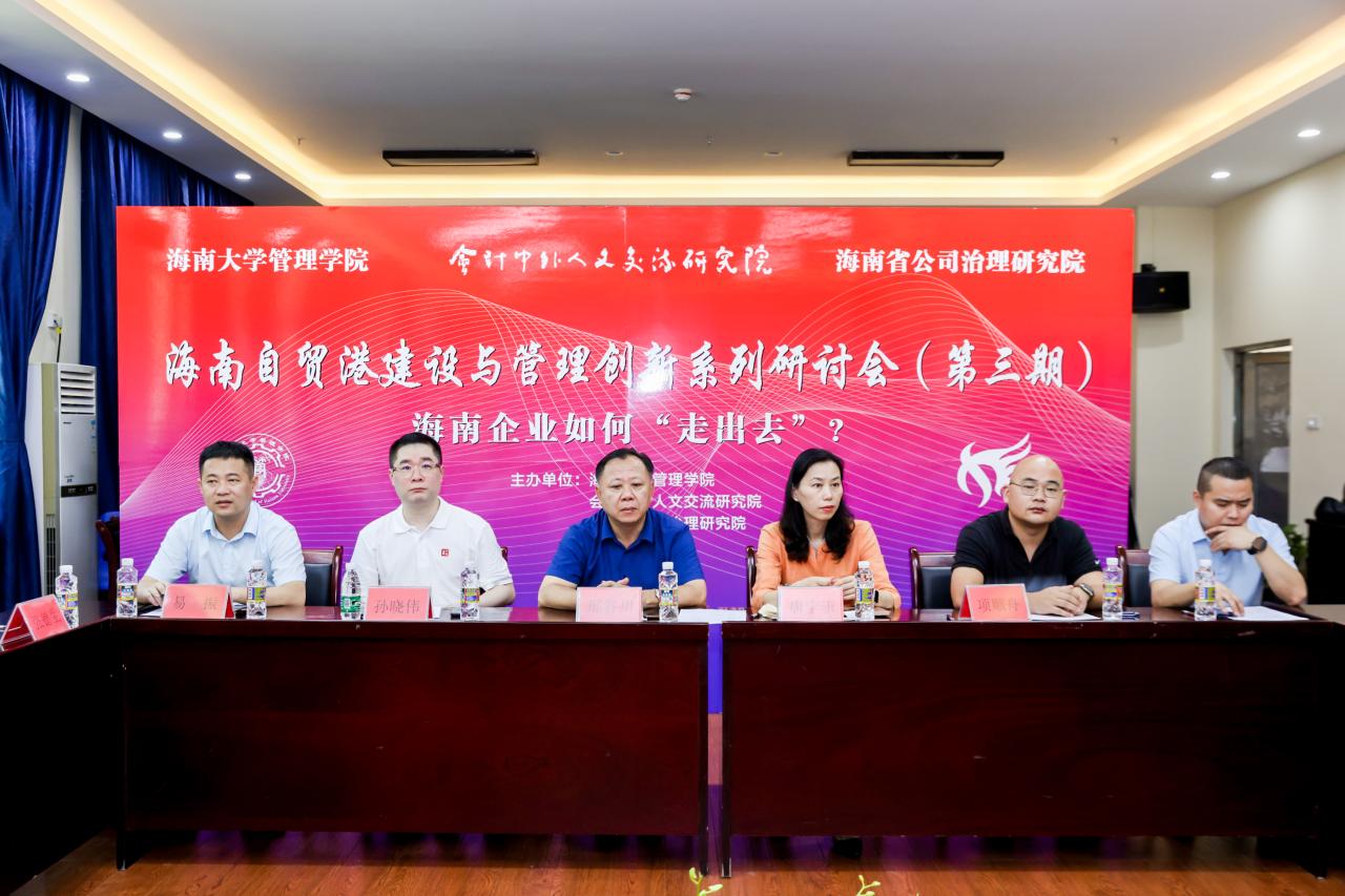 2021年5月25日下午,自贸港建设与管理创新系列研讨会(第三期)之海南企业如何“走出去”在社科楼B112学术报告厅成功召开。学院全体领导及部分师生、企业代表出席会议。深圳大学微众金融科技学院沈捷教授、海南省金融发展促进会副会长兼秘书长郗俊杰、 中瑞诚会计师事务所执行事务合伙人孙晓伟、海南鑫叁玖智能科技有限公司总经理项顺舟参加会议。beat365唯一官方网站管理学院许能锐副院长主持活动。本次会议采用线上线下相结合的视频会议与图片直播模式进行。