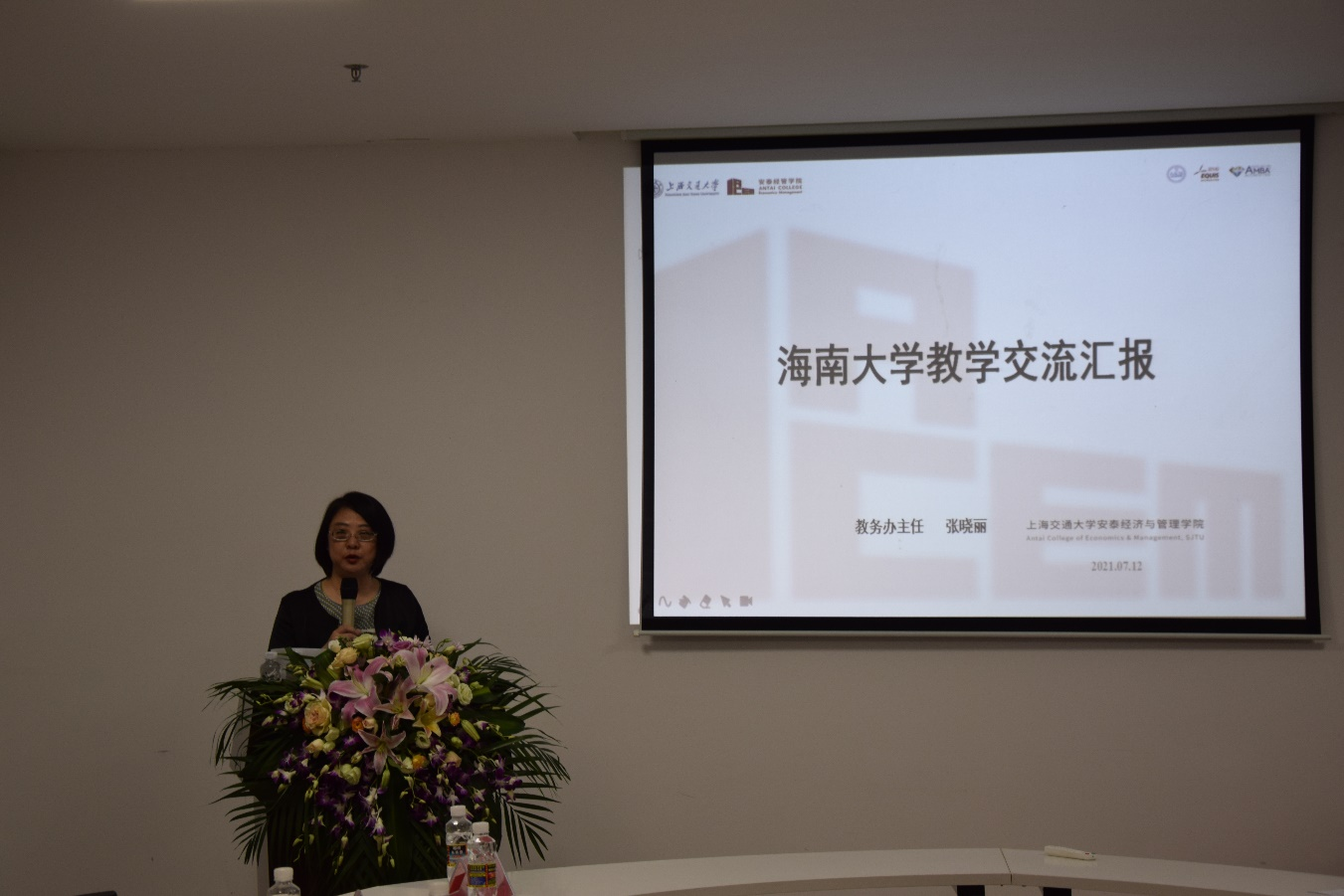 张晓丽主任向大家介绍了上海交通大学安泰经济管理学院校院人才培养体系、学院组织架构,并分享了自己关于教学管理的思考。