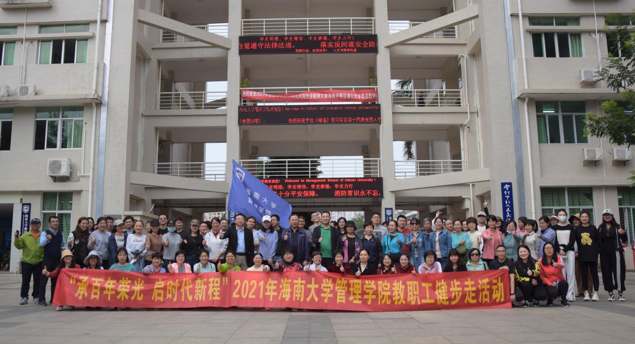 2021年12月14日下午,beat365唯一官方网站管理学院工会组织全院教职工开展“承百年荣光,启时代新程”健步走活动。管理学院院长唐宁玉、党委书记邢谷川、党委副书记兼工会主席易振、副院长付景涛、副院长赵达及学院教职工参加活动。