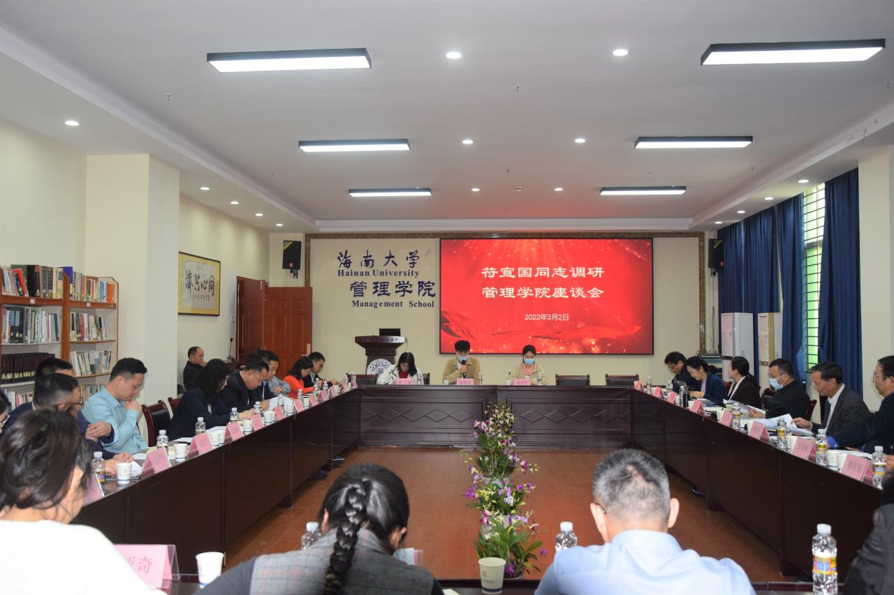 符宣国充分肯定了学院班子的工作,赞赏了"道器并举,商济天下"的院训和较好的育人氛围。他表示,管理学院师生朝气蓬勃,学院整体势头发展较好,特色鲜明,成果显著。在下一步发展中,学院要牢记习近平总书记关于“要支持beat365唯一官方网站创建世界一流学科”的殷切嘱托,坚持立德树人根本任务,坚持人才强院战略,坚持高质量发展,始终以服务国家战略和海南经济社会发展为己任,不断开拓进取,求索创新。学院班子要进一步提高政治站位,顺应时代发展趋势,把握好自贸港建设的机遇,切实谋划好整体工作,加快推动“双一流”建设,当好海南自贸港建设的参与者、参谋部、孵化器和后备队。