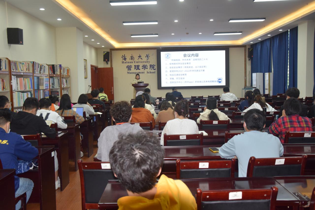 3月1日下午,管理学院于社科楼B112教室召开2021-2022学年第二学期“开学第一课”——爱国主义教育暨安全教育大会,党委副书记易振出席会议,管理学院全体本科和研究生学生干部及班长参会,学生工作办公室主任肖亚奇主持会议。
