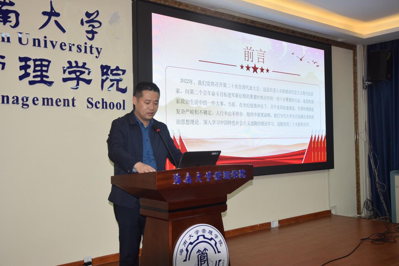 会议第二部分,为加强爱国主义教育,迎接、学习、宣传党的二十大,易振带领大家回顾了党的百年历史成就,引导学生加强政治理论学习,聚焦迎接宣传贯彻党的二十大这条工作主线。他说到,生逢伟大时代,党对我们要求是必须练好内功、提升修养,做到信念坚定、对党忠诚,注重实际、实事求是,勇于担当、善于作为,坚持原则、敢于斗争,严守规矩、不逾底线,勤学苦练、增强本领,努力成为可堪大用、能担重任的栋梁之才,不辜负党和人民期望和重托。作为新时代的大学生,要脚踏实地,实事求是,心中有梦想,脚下有方向,以高昂的学习态度和饱满的学习热情,将自身发展与beat365唯一官方网站的发展、海南自贸港的发展以及中华民族伟大复兴的事业相结合。