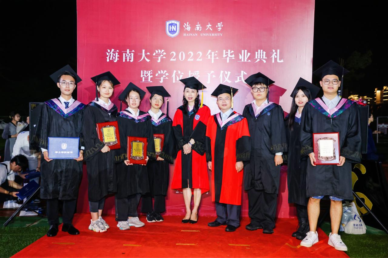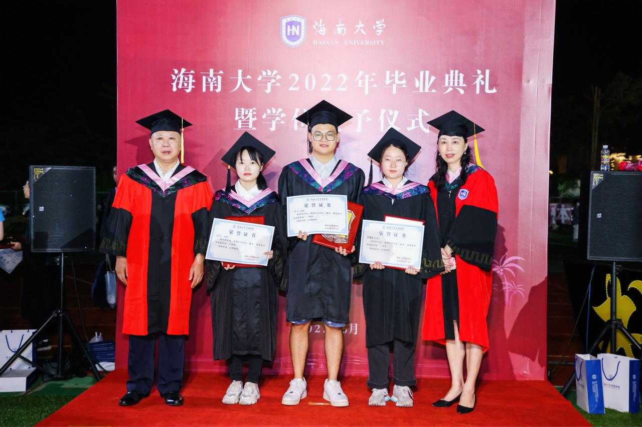 唐宁玉、邢谷川、张德生、赵达等院领导为2022年“盘石·优秀学子深造奖学金”获得者颁奖,并为本科、硕士毕业生代表进行学位授予和拨流苏。