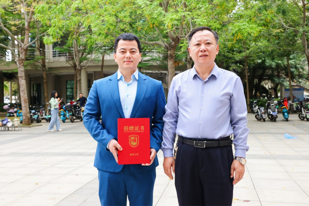 随后,学院童泽林副院长主持捐赠仪式,邀请广大校友积极乐捐,持续支持学院发展建设。院党委邢谷川书记向校友代表,海南汉普知识产权集团有限公司总经理陈欢颁发捐赠证书。