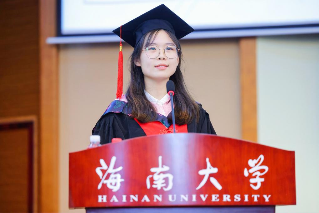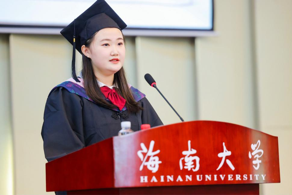 研究生毕业生代表芦雪瑶(2019级工商管理专业博士研究生)祝贺各位同学圆满完成了自己的学业,从此翻开人生新篇章。她号召各位毕业生们能不忘初心、牢记使命,立鸿鹄之志,展骐骥之跃,书写无悔青春。