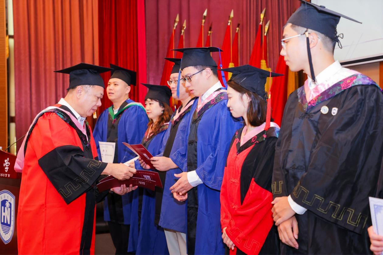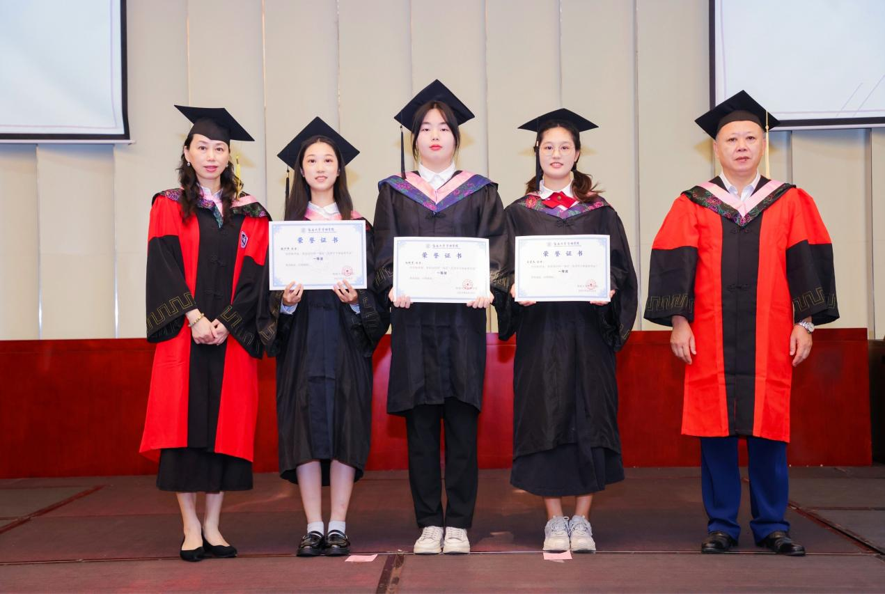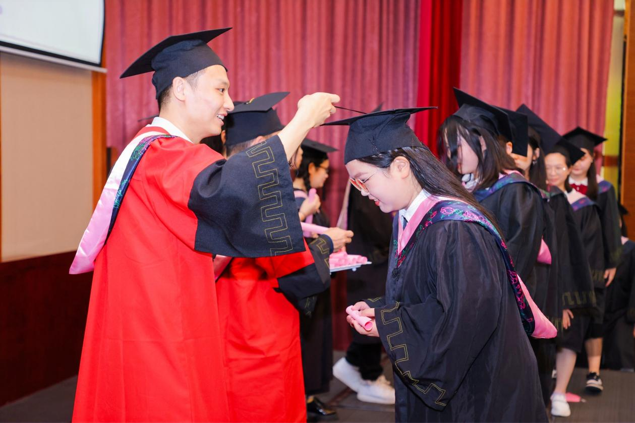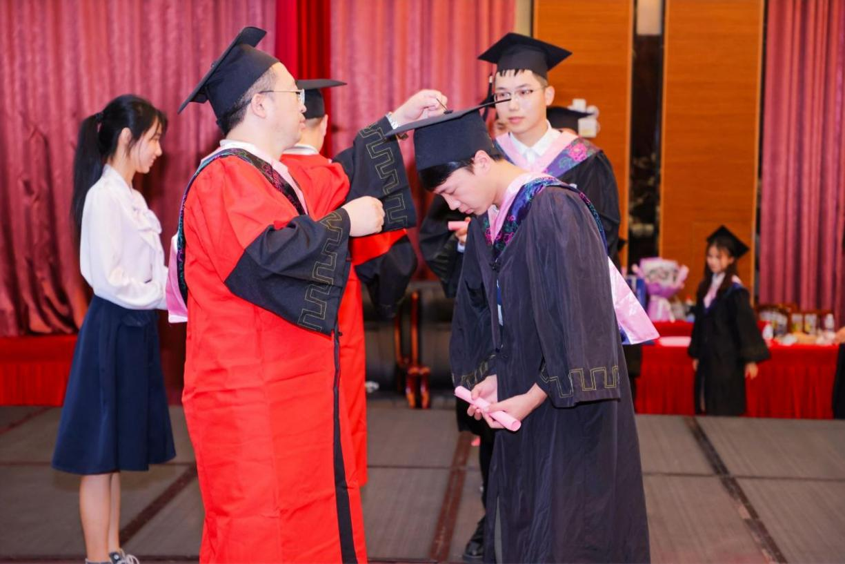 学院领导依次为2023年“盘石·优秀学子深造奖学金”获得者颁奖,并为参加典礼的全体毕业生拨流苏和进行学位授予。