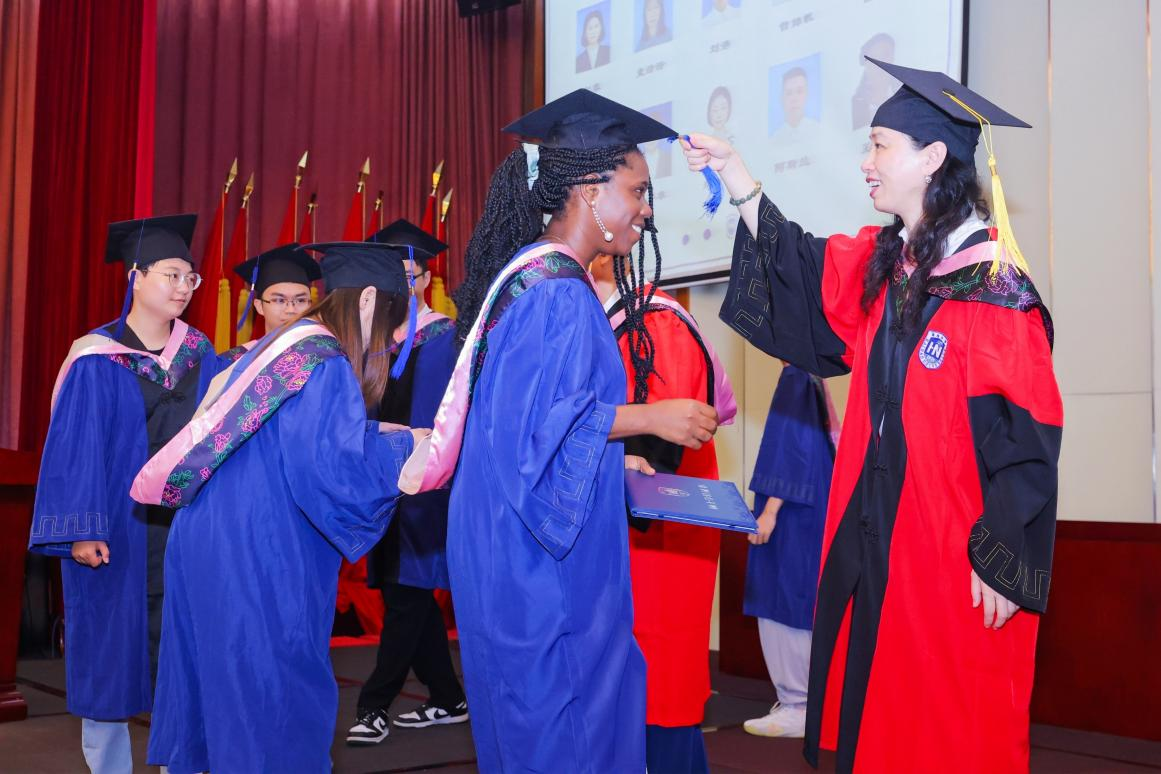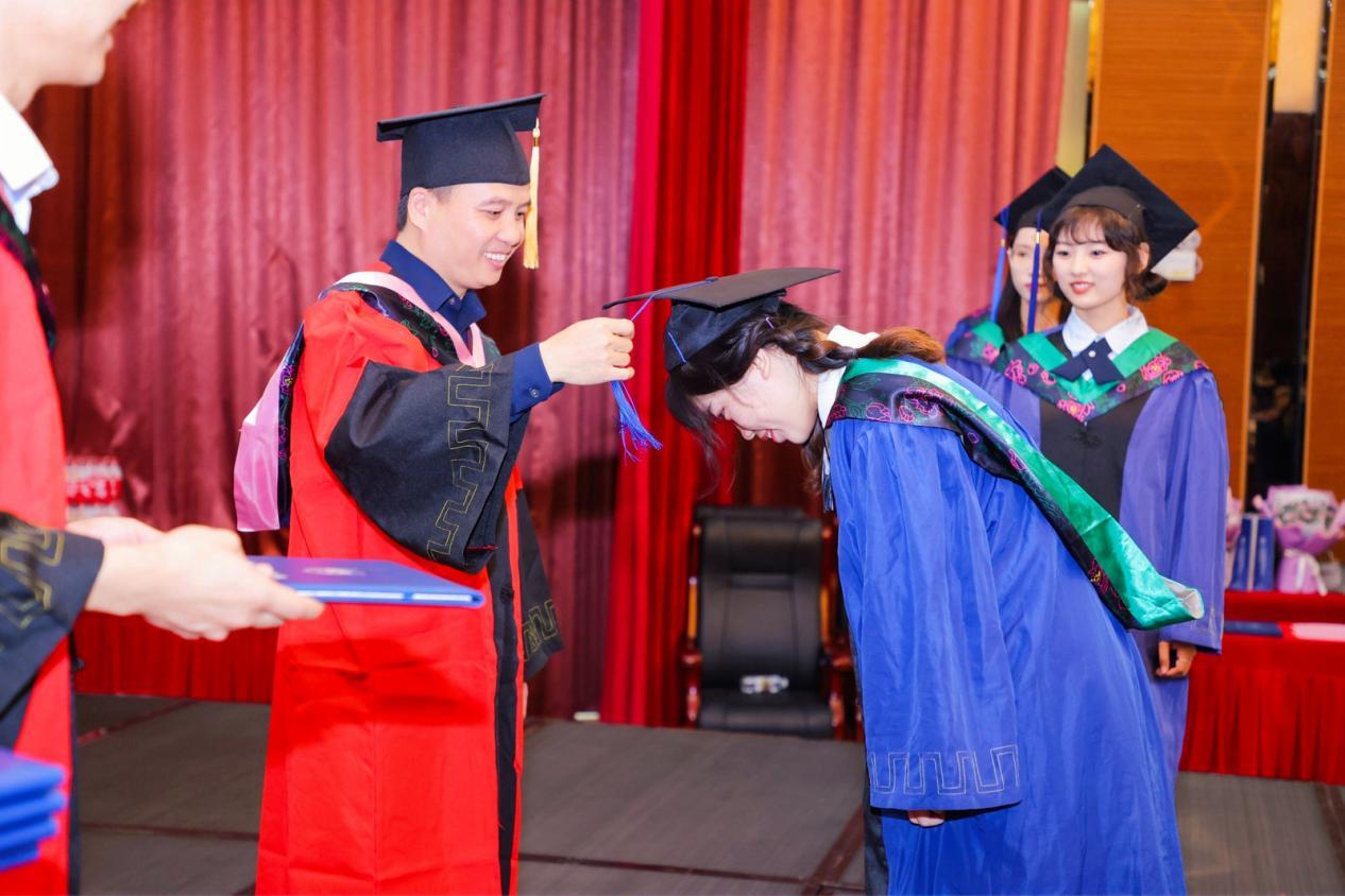 仪式最后,毕业生们向院领导代表献花,表达敬意和感谢。