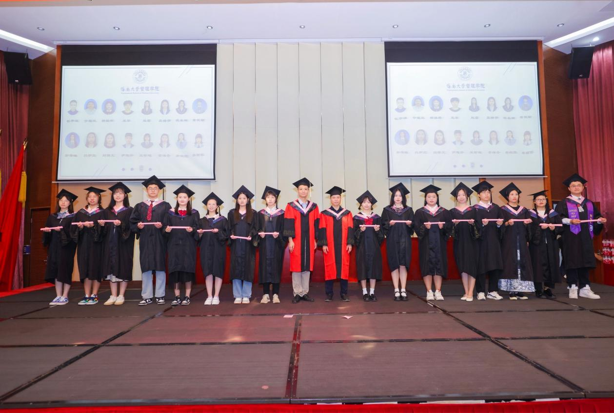 管理学院院长唐宁玉,院党委书记邢谷川,副院长许能锐、付景涛、赵达、童泽林出席仪式。学院教师代表、毕业生代表等共三百余人参加。本次仪式由赵达主持。