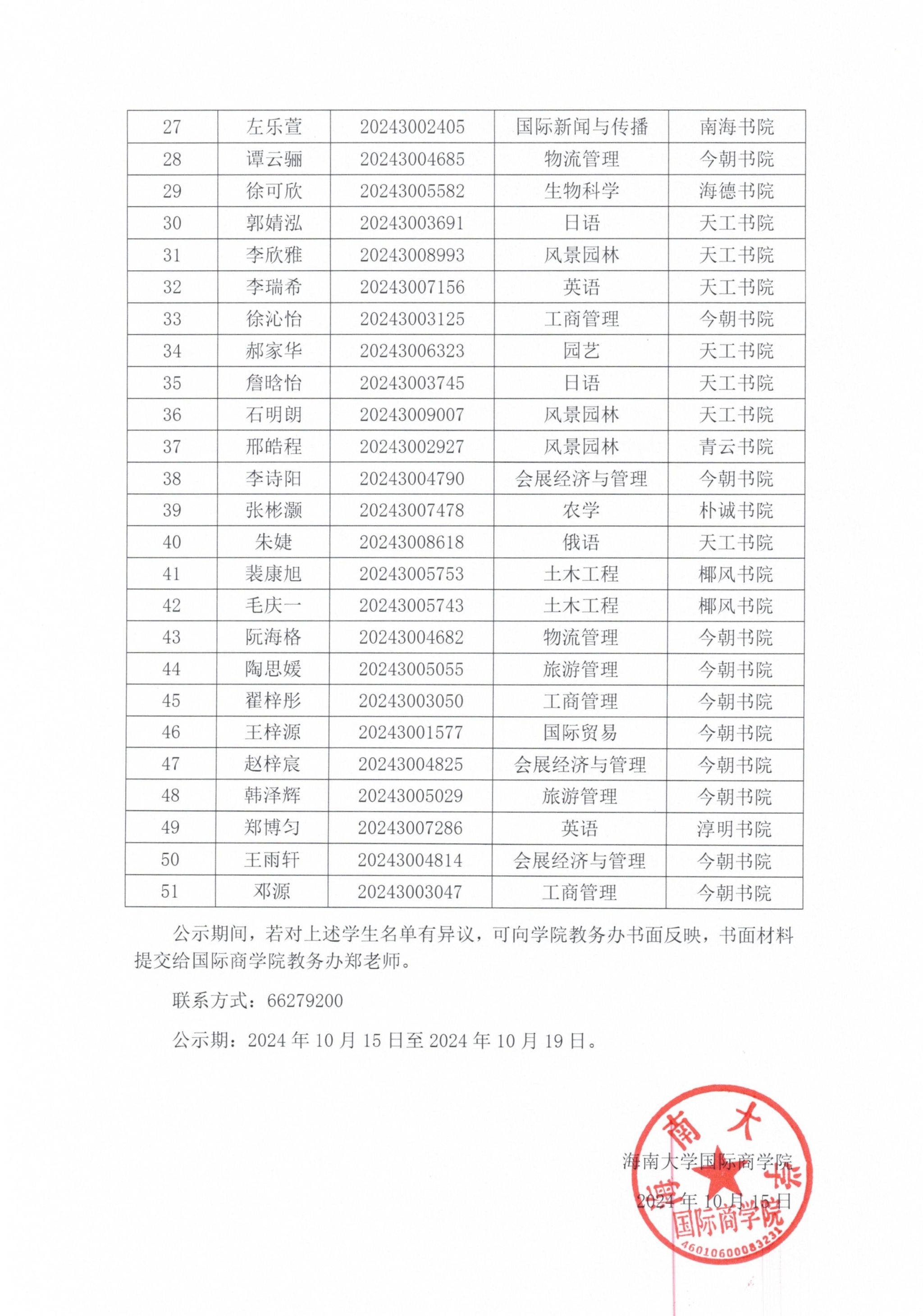 本科生名录