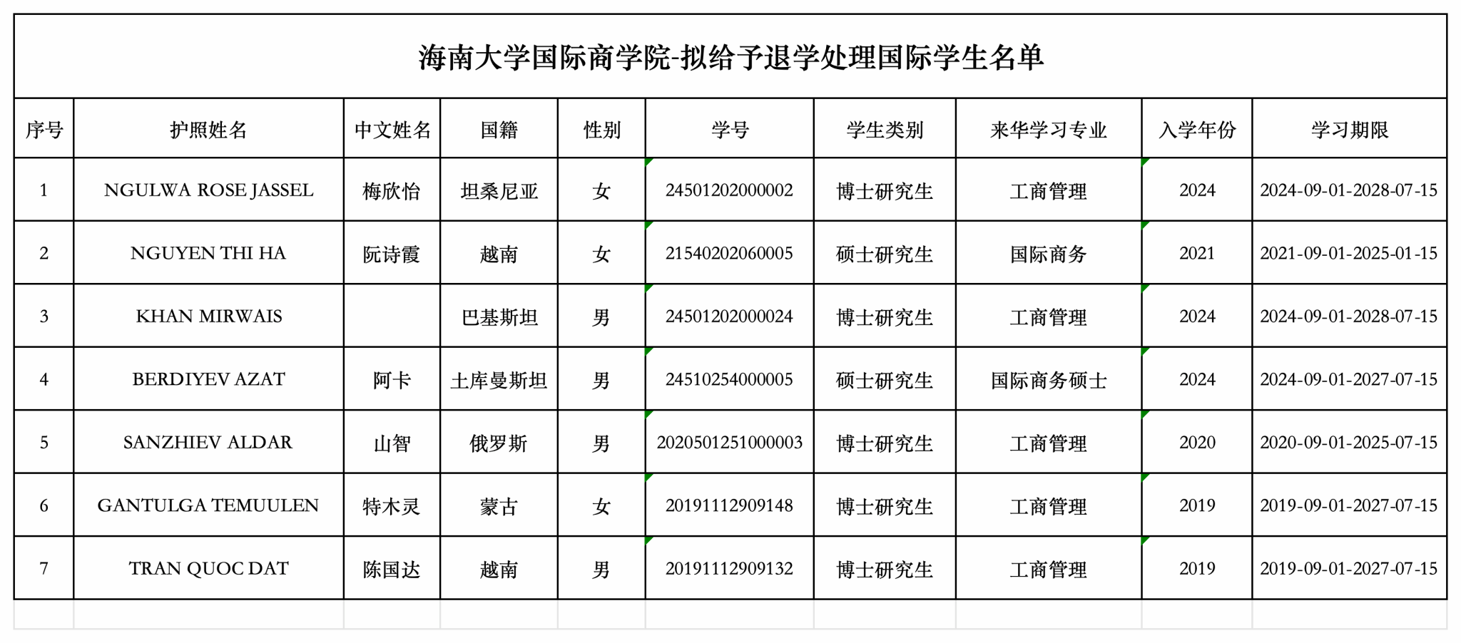 beat365唯一官方网站关于拟清退七名国际学生的公示