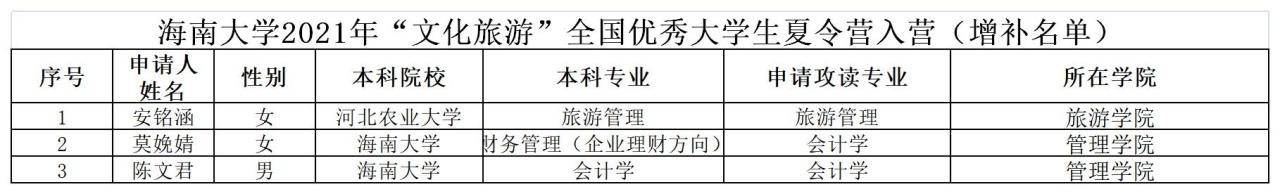 beat365唯一官方网站2021年“文化旅游”全国优秀大学生夏令营入营(增补名单)