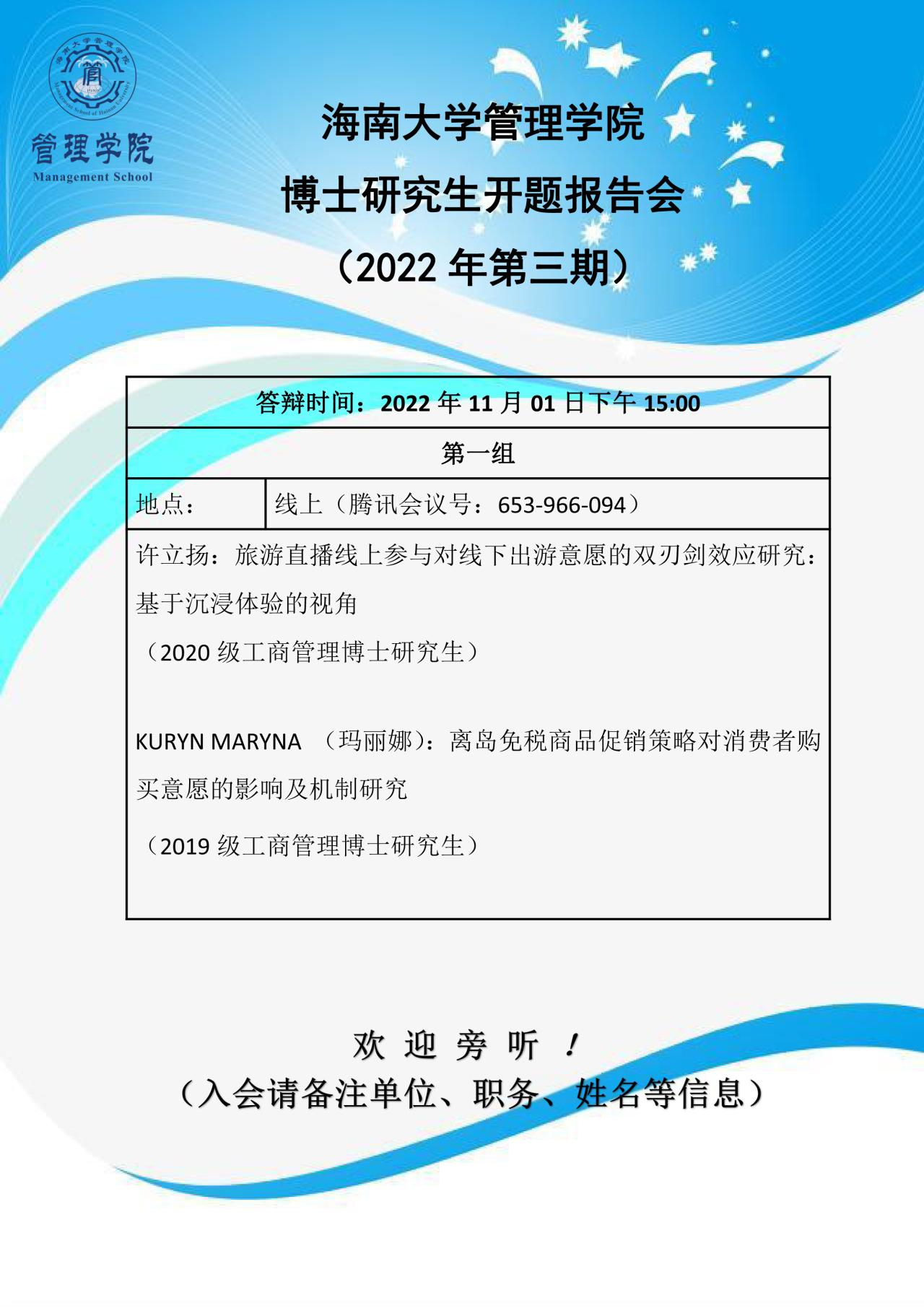beat365唯一官方网站管理学院博士研究生开题报告会(2022年第三期)