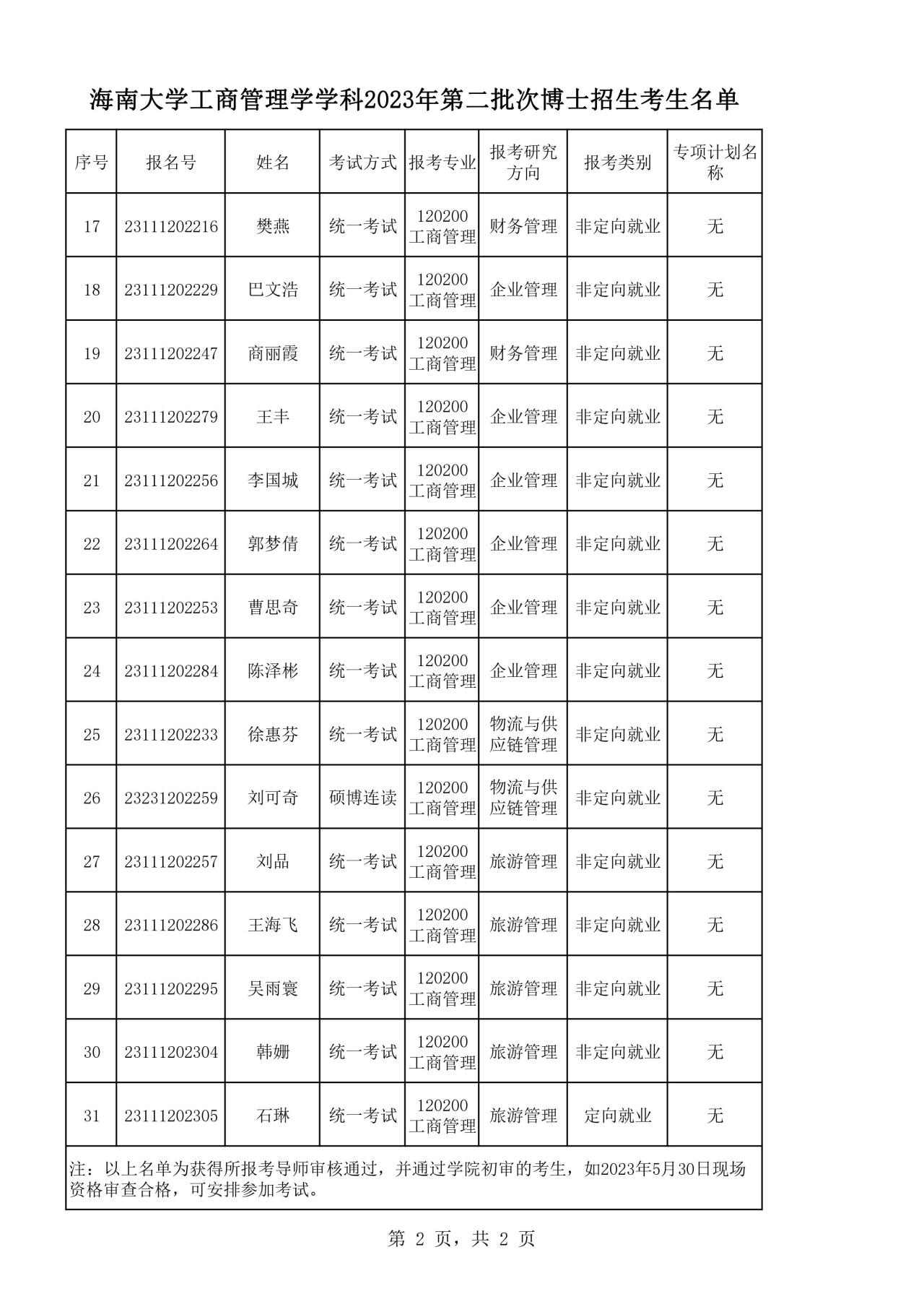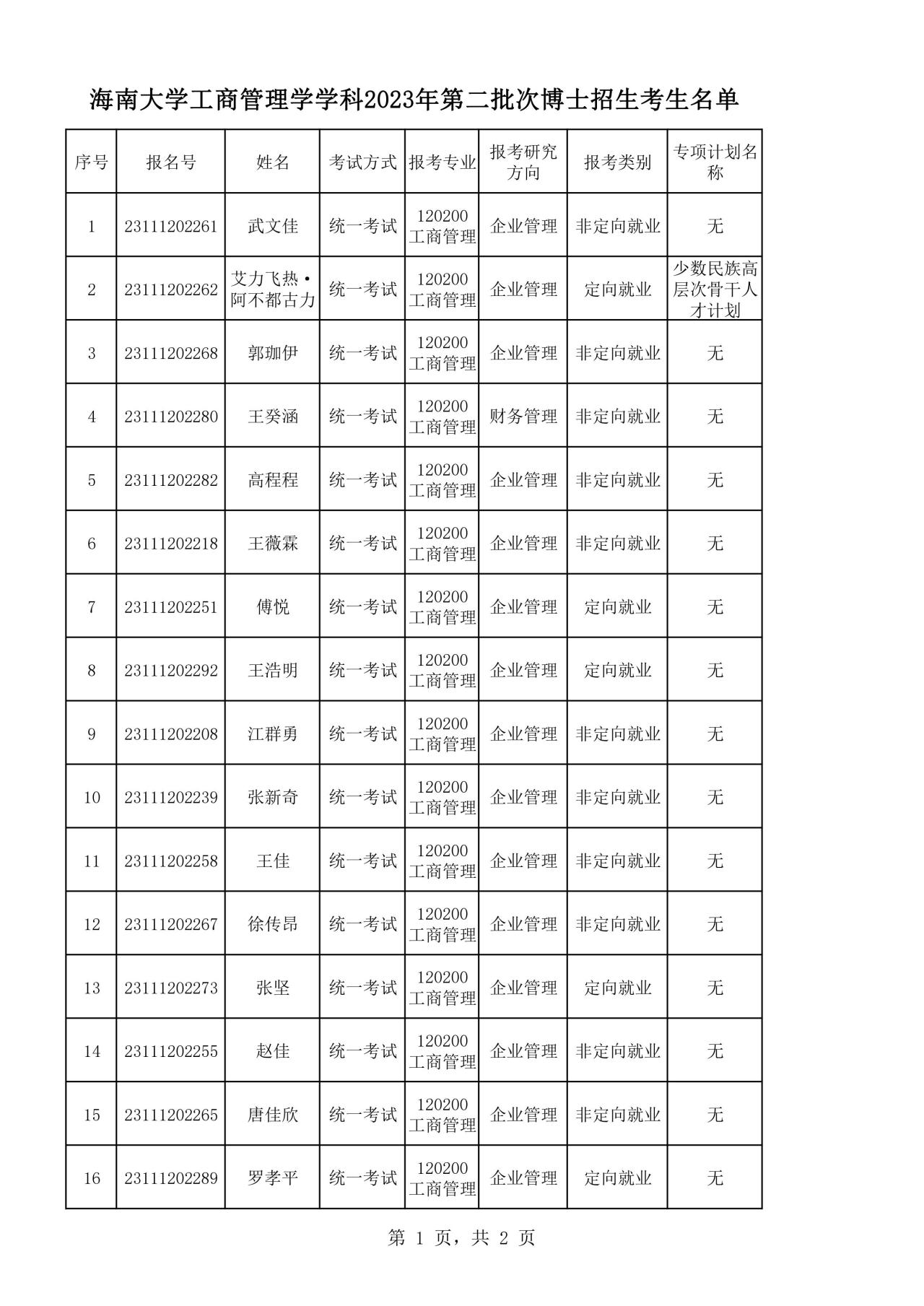 beat365唯一官方网站工商管理学学科2023年第二批次博士招生考生名单