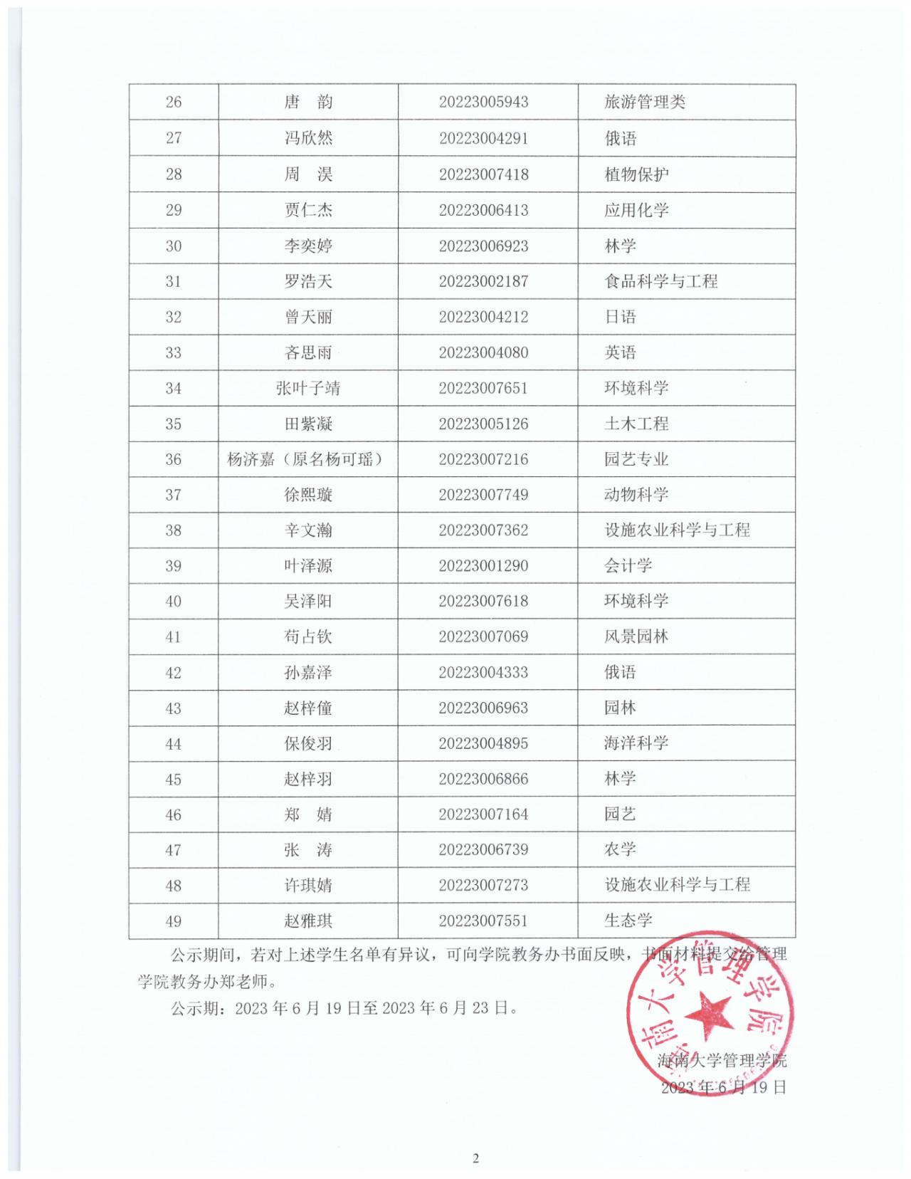 本科生名录