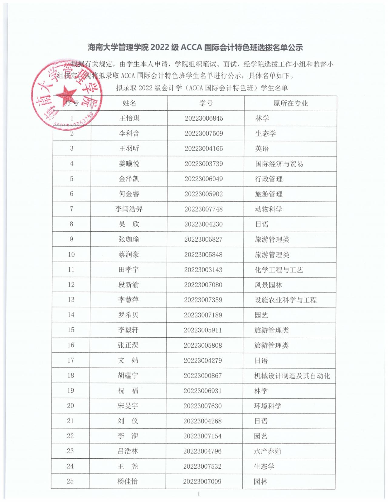 beat365唯一官方网站管理学院2022级ACCA国际会计特色班选拔名单公示