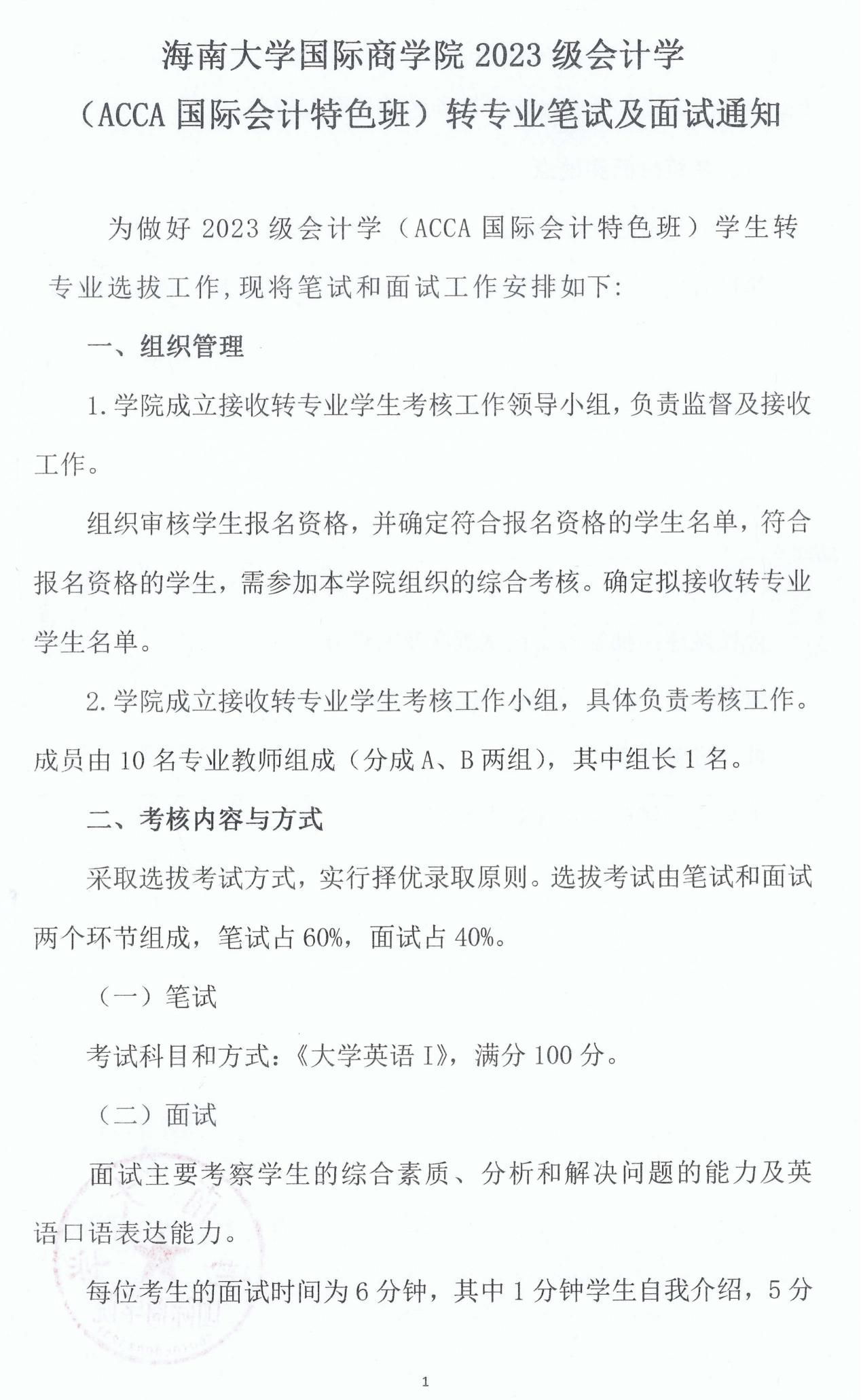 beat365唯一官方网站2023级会计学 (ACCA国际会计特色班)转专业笔试及面试通知