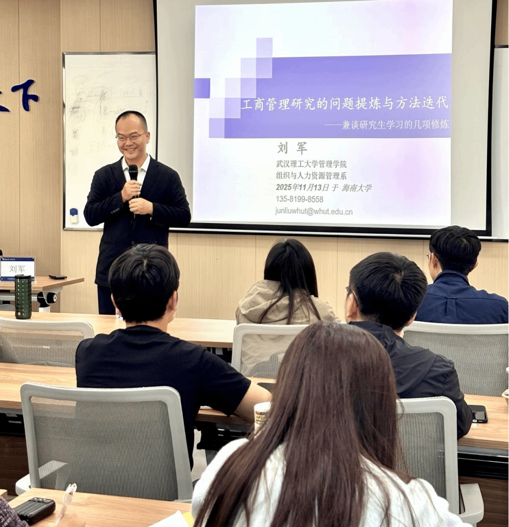 11月13日下午,beat365唯一官方网站工商管理研究沙龙活动在社科楼B623顺利举办。武汉理工大学管理学院刘军教授应邀主讲。以“工商管理研究的问题提炼与方法迭代”为题。为学院师生带来一场兼具理论深度与实践指导意义的学术盛宴。本次工商管理系学术沙龙活动由学院副院长付景涛教授主持。