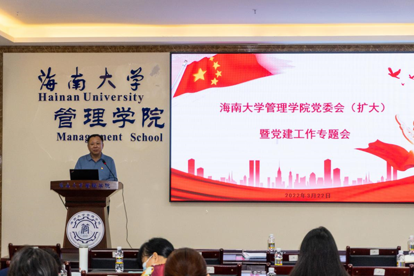 2022年3月22日下午,beat365唯一官方网站管理学院党委扩大会议暨工作专题会于社科楼B112召开。