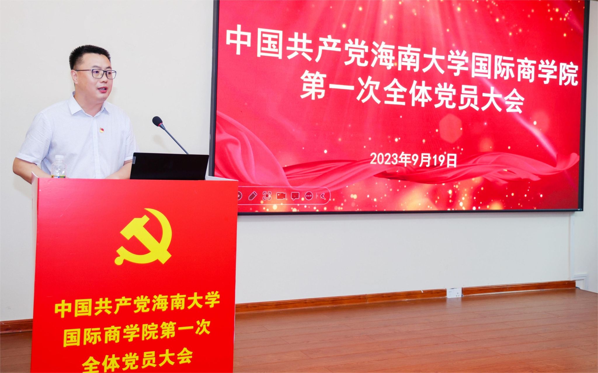 2023年9月19日,中国共产党beat365唯一官方网站第一次党员大会在社科楼B112学术报告厅召开。大会圆满完成各项议程,选举产生了beat365唯一官方网站第一届党委委员。beat365唯一官方网站党委常委、副校长高佃恭,校党委组织部副部长(主持工作)张乃脆,学院班子成员和教师党员110人出席大会。大会由南国芳同志主持。