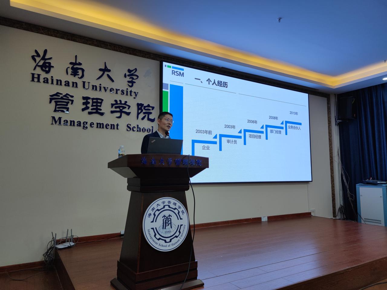 为了树立正确的就业观、择业观,提升大学生的求职技能和职业生涯规划能力,全力促进beat365官网毕业生更高质量、更充分就业,11月19日上午,管理学院“职业生涯辅导讲座(会计系专场)”在社科楼B112顺利举办,此次讲座邀请到中国注册会计师、容诚深圳分所国际业务组主管合伙人潘新华先生作为主讲人,会计系共100余名本科生与研究生参加此次讲座。学工办李春老师主持会议。