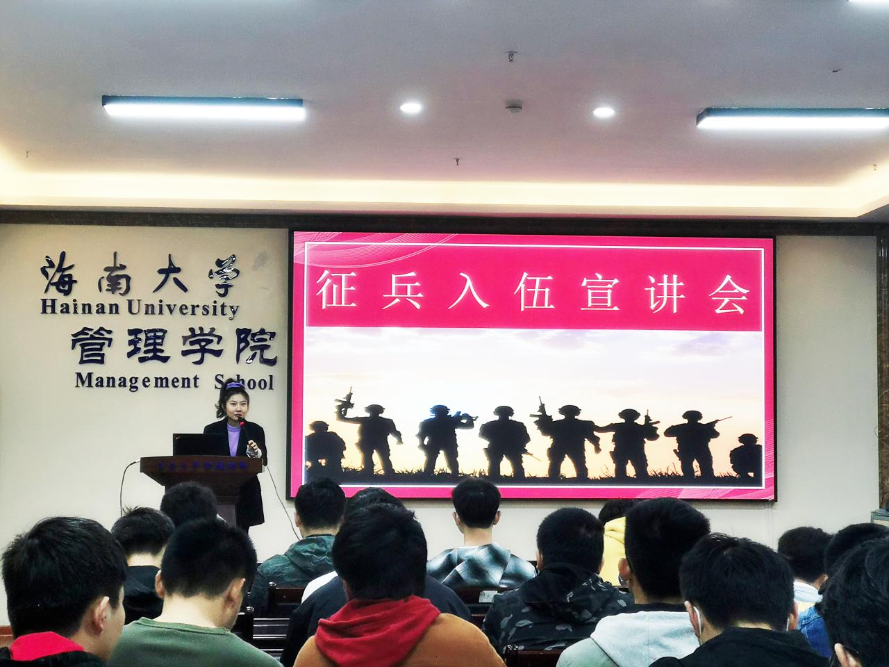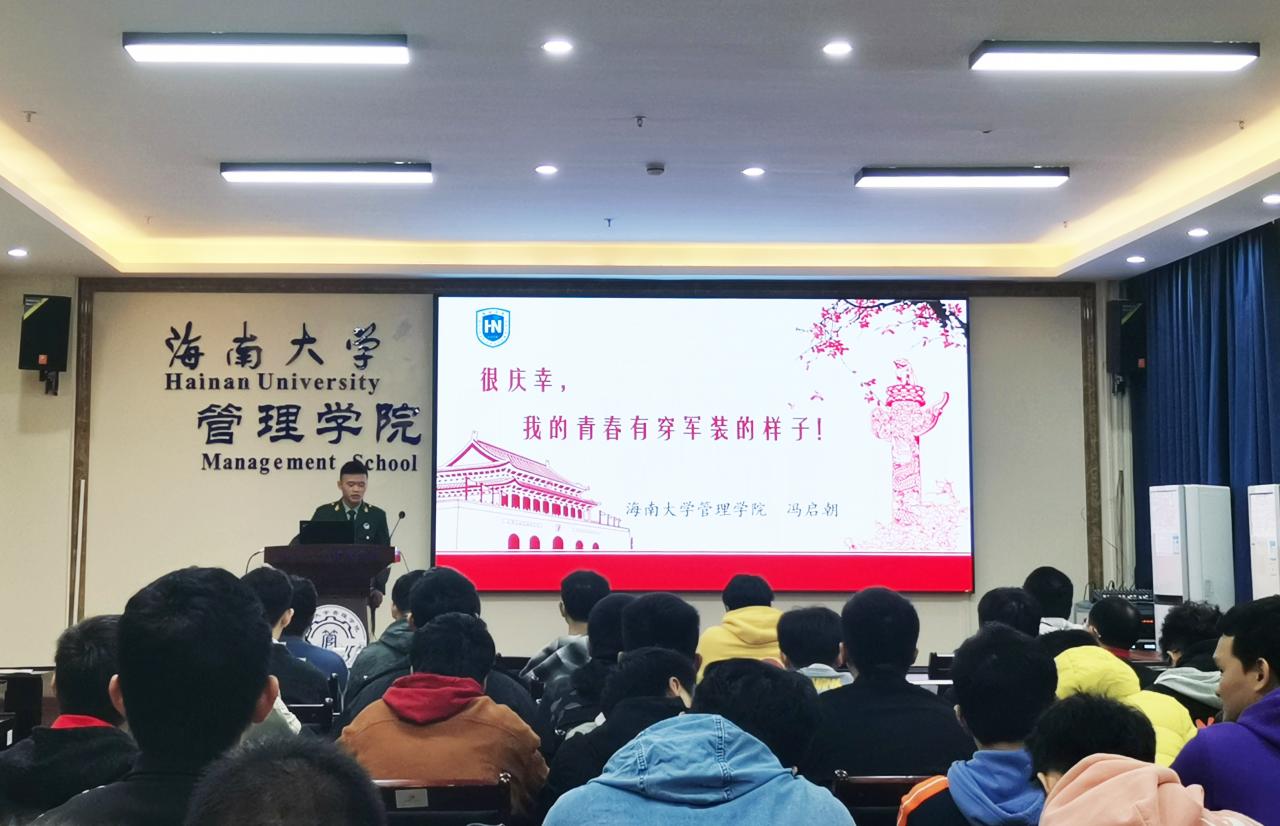 为推进应届毕业生应征入伍工作,帮助了解、掌握应征入伍相关政策和流程,鼓励积极应征入伍,献身国防事业。2021年12月27日上午,管理学院于社科楼B112教室举行应届毕业生征兵入伍宣讲会。党委副书记易振、学生工作办公室主任肖亚奇、辅导员黄瑜、退役大学生代表冯启朝、2018级应届毕业生代表参会。