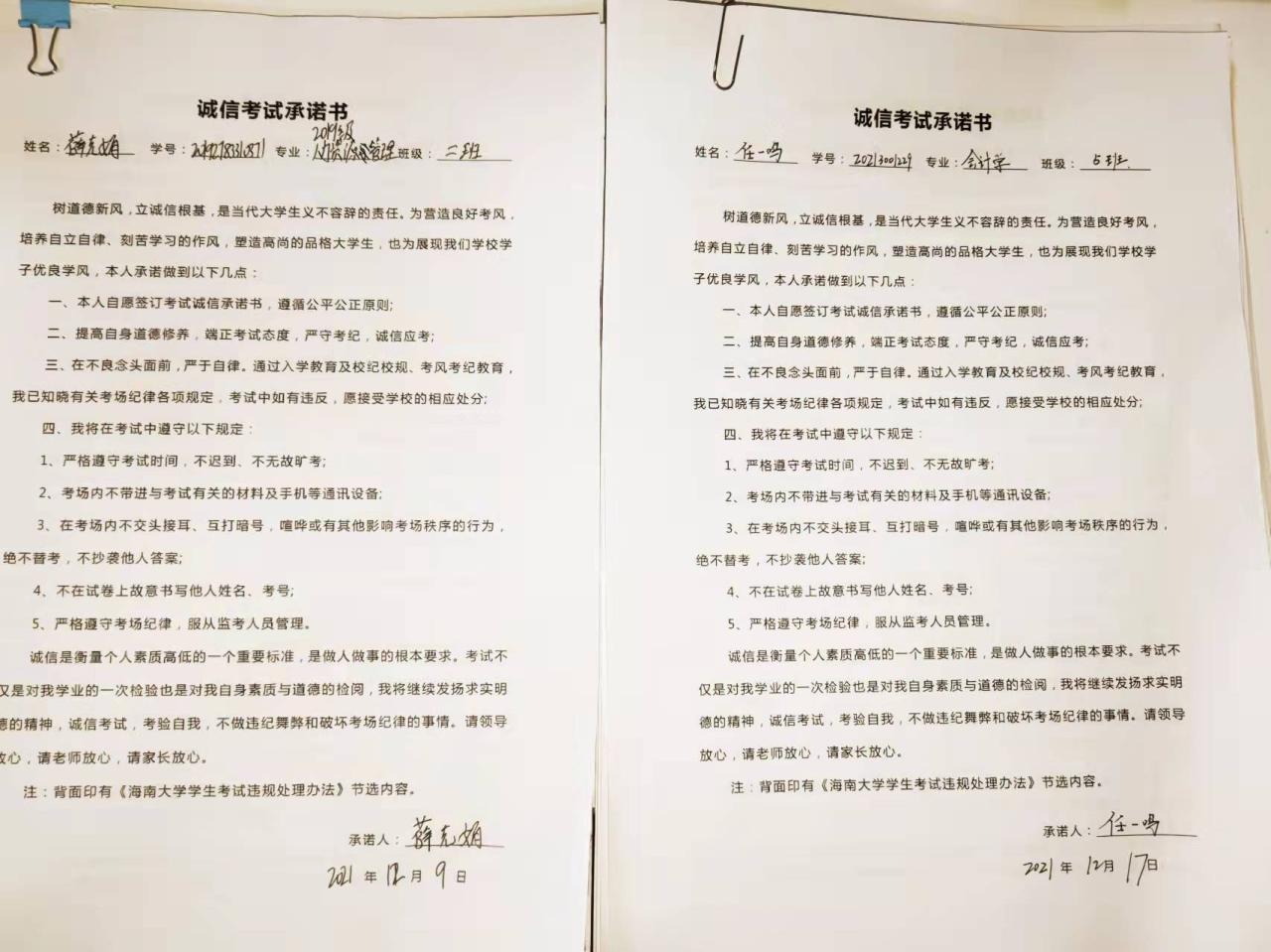 在考试前,要求各班级召开“诚信考试”主题班会,组织学习了《beat365唯一官方网站课程考试考场规则》、《beat365唯一官方网站学生考试违规处理办法》,引导广大学生认真学习、诚信考试、诚信做人,并联系案例组织学生讨论,强化学生对考试违纪危害性的认识,通过多渠道宣传确保学生对考试纪律、考场规则应知尽知,并签署了诚信考试承诺书。