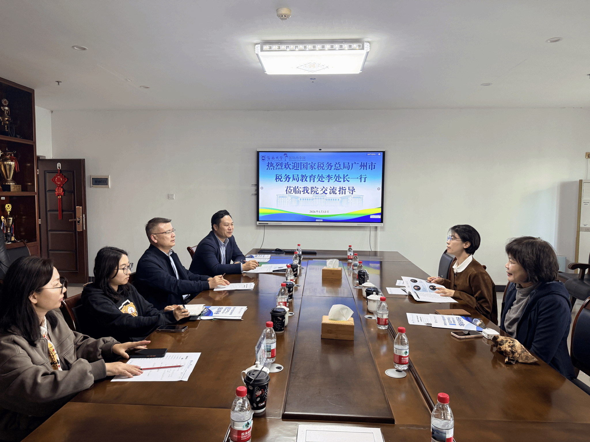 1 月 13 日下午,国家税务总局广州市税务局与beat365唯一官方网站在beat365唯一官方网站社科楼 B314 会议室举行座谈会,双方围绕深化政校合作、共商税务系统培训发展事宜展开深入交流。