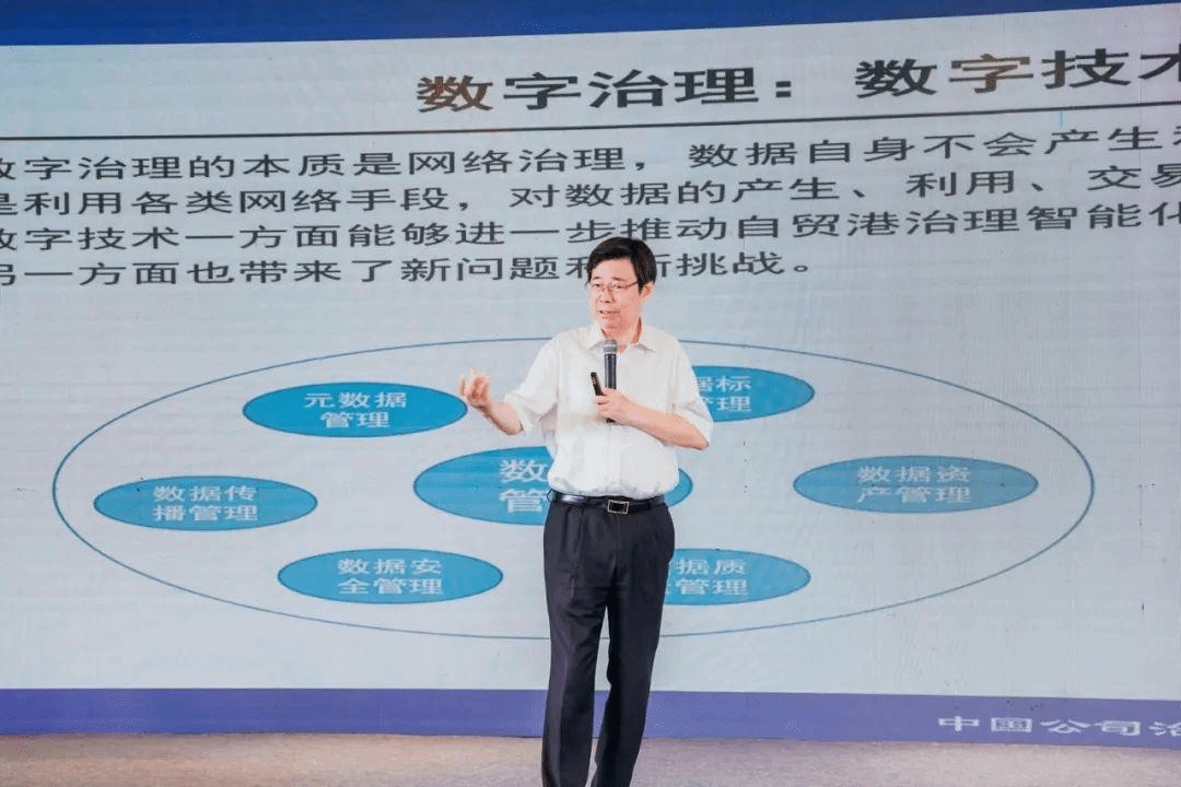 论坛的核心环节——主题演讲依次展开。首先,中国公司治理研究院院长李维安就“自贸港高质量发展与治理现代化”进行了深入剖析,提出以培育和创新治理理念引领自贸港高质量发展,治理体系现代化,从行政型向社会型,从管理型向服务型转化,对公司治理提出了策略和建议。