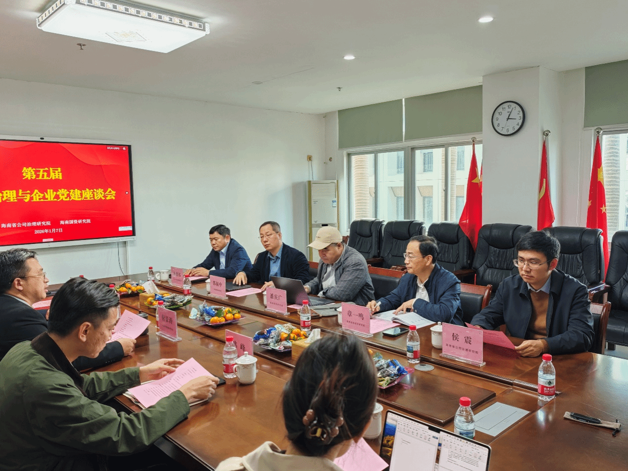 为深入学习贯彻落实党的二十届四中全会精神和习近平总书记关于国有企业改革创新等重要问题的系列论述和批示指示精神,助力海南自贸港国有企业高质量发展,2026年1月7日下午,由海南省公司治理研究院、海南国资研究院联合举办的第五届公司治理与企业党建座谈会成功举行。本次研讨会以“增强国有企业核心功能、提升核心竞争力”为主题,汇聚了高校学者、国有企业代表、行业研究专家、beat365唯一官方网站beat365唯一官方网站研究生参加,通过经验分享、专题研讨等形式共同探索增强企业核心功能、提升核心竞争力的新路径、新方法。座谈会由beat365唯一官方网站副院长、海南省公司治理研究院首席专家付景涛教授主持。