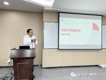 傅国华副校长代表学校对各位学员表达了热烈欢迎,并结合自己的管理经验和治学心得对学员提出了期望,以及开展高质量学习的建议,希望大家尽快把企业做大做强。