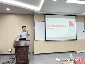 开班仪式结束后,李维安教授为学员讲授了第一课,深入浅出地讲授了公司治理的发展历程、基本架构、核心理念和经典案例,学员表示受益匪浅,课堂氛围热烈。