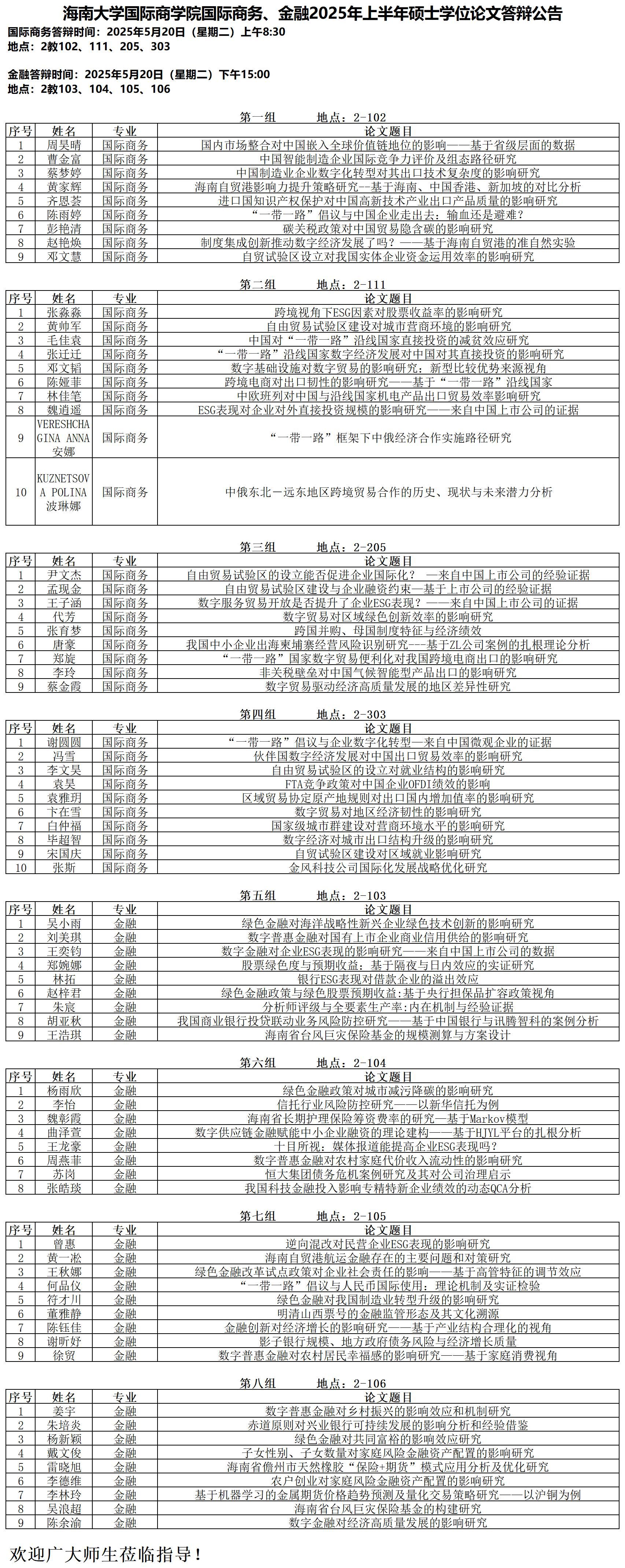 beat365唯一官方网站国际商务、金融2025年上半年硕士学位论文答辩公告