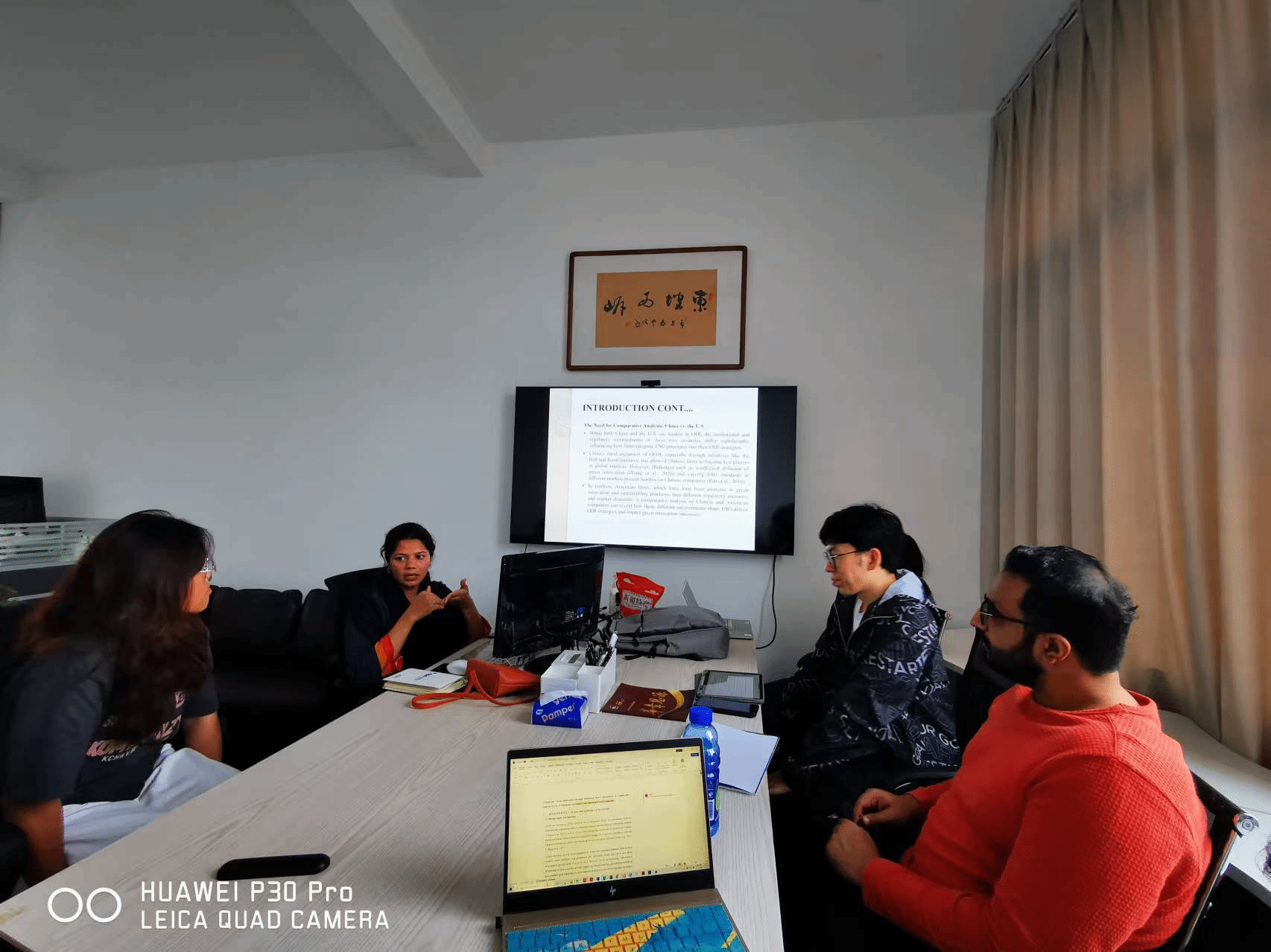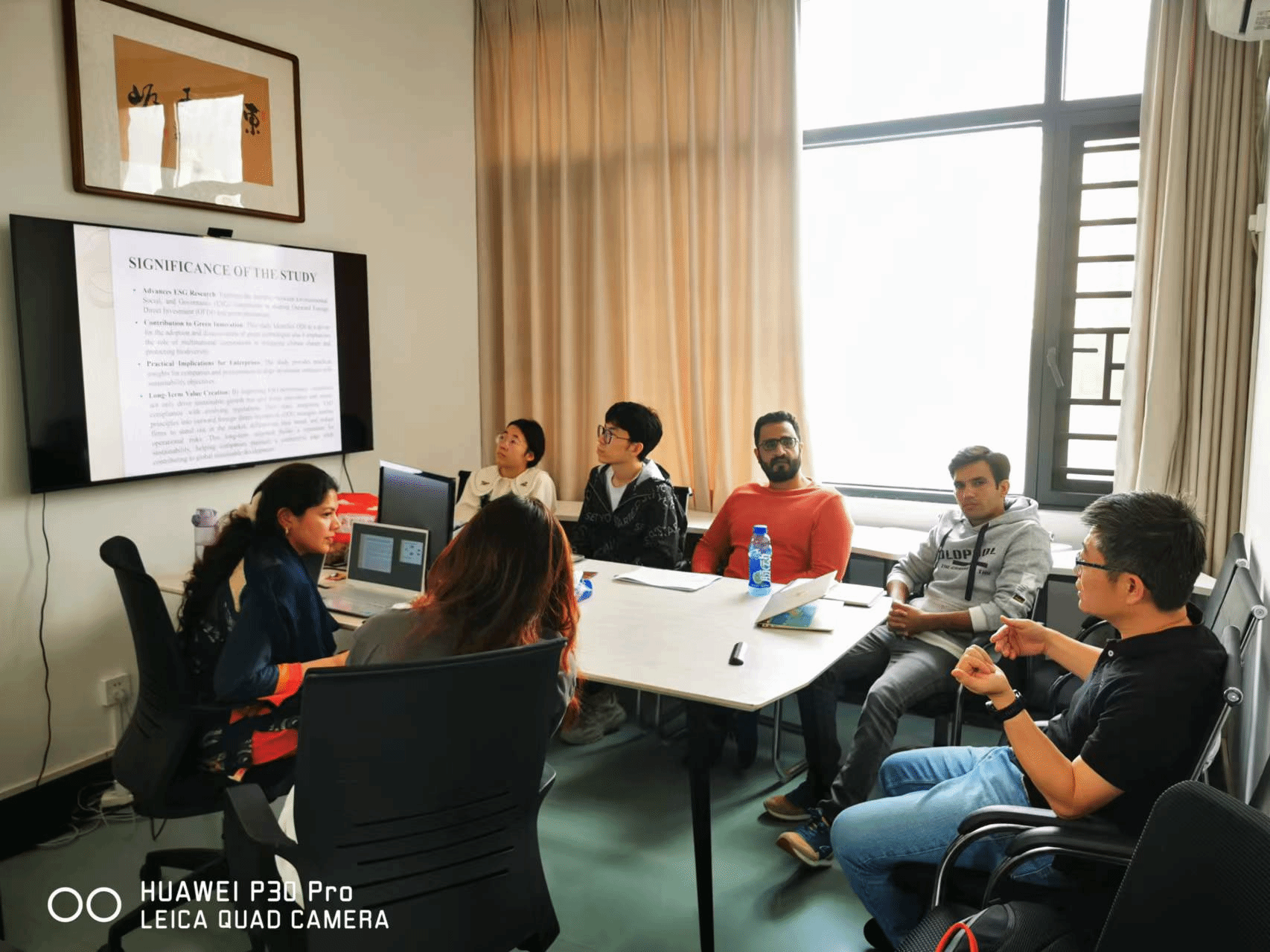 在活动中,来自巴基斯坦的博士留学生Amina作了主题汇报,其他参与的老师与同学则针对她的汇报,分享了各自对ESG的独到见解和相关建议。