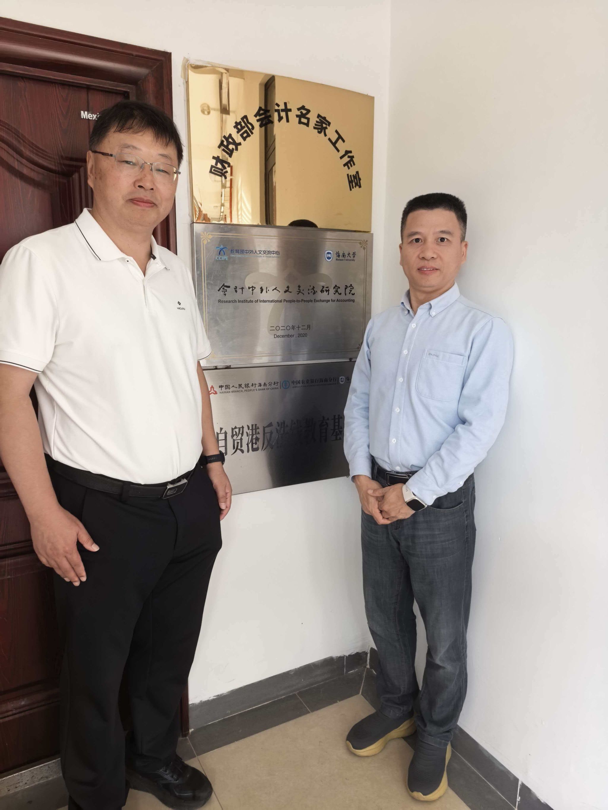 图6:许能锐副院长与刘俊勇教授在beat365唯一官方网站会计中外人文交流研究院办公室合影留念